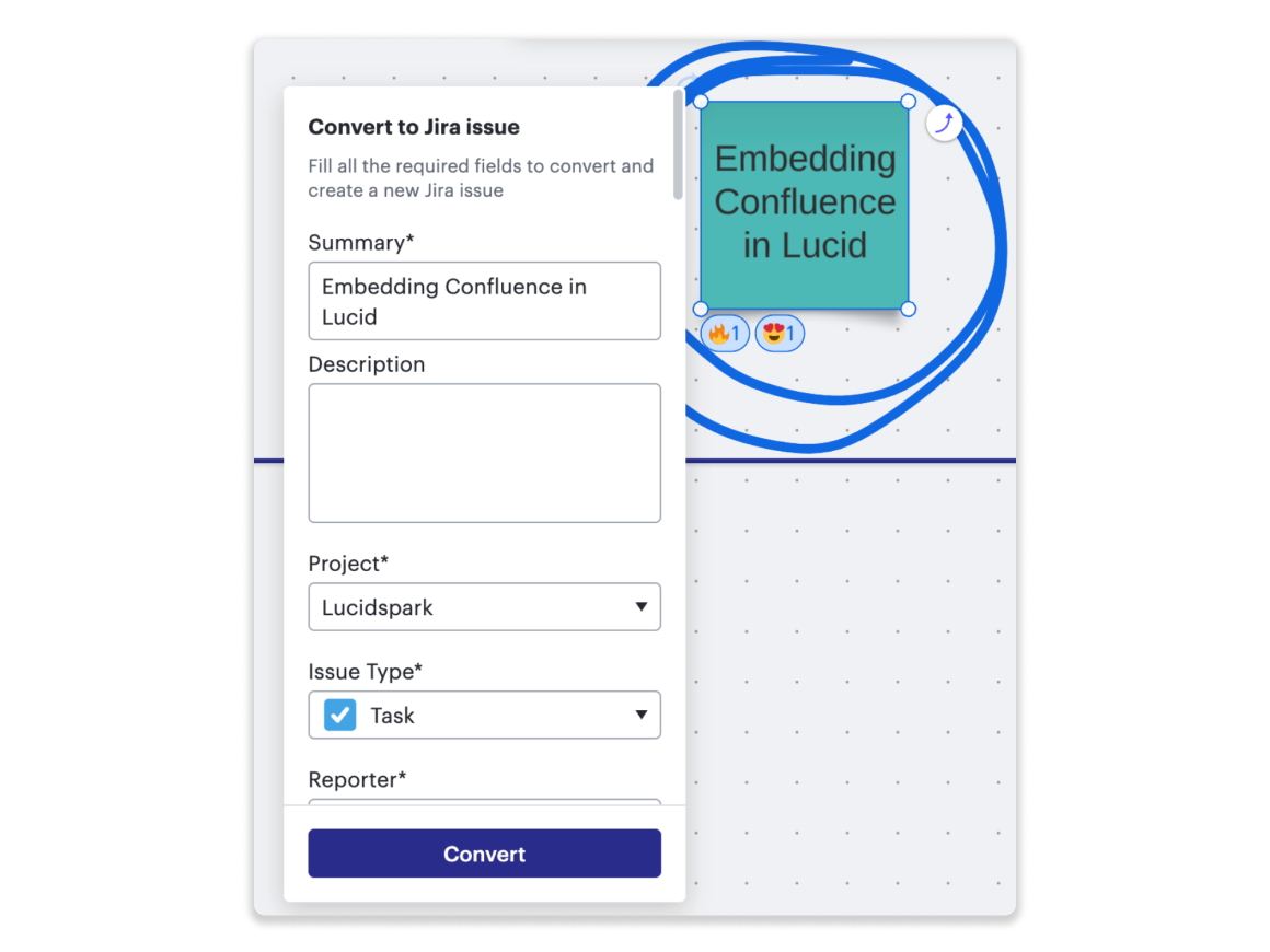 Our team found it seamless to go from a sticky note idea to a fully functional Jira story using our convert to Jira issue feature. This organically creates a system of record so you can convert your ideas into action more quickly and efficiently.
