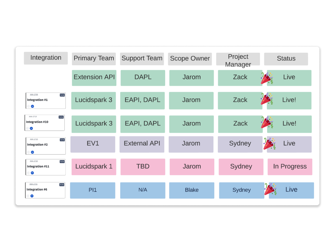 Lucid supports every use case, every step of the way. To illustrate this, consider the following ways visual collaboration enhanced our own recent integration launch where we built 15 integrations in response to our customers’ unique use cases.