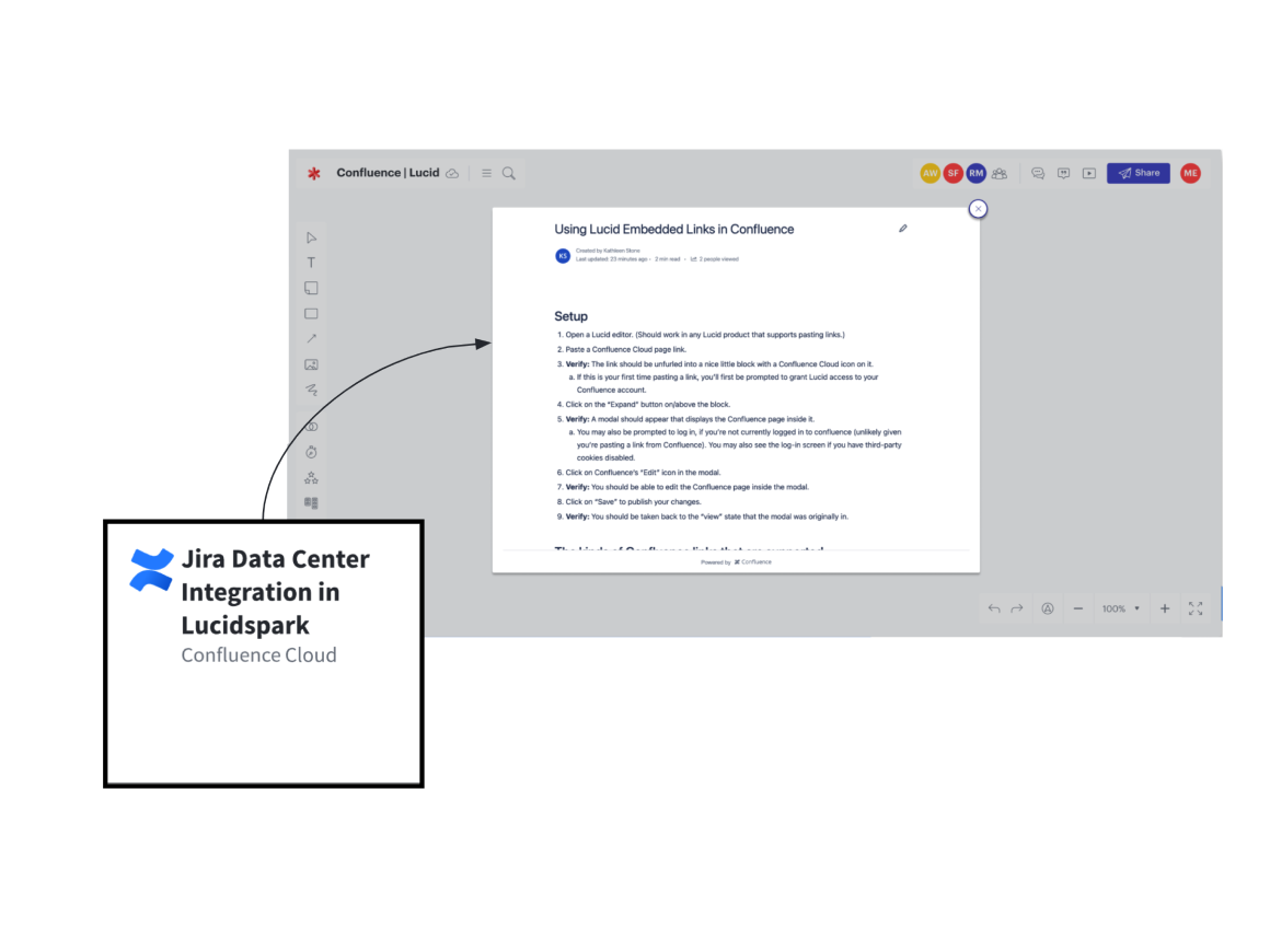 And now, Lucid and Confluence users can leverage visual collaboration in new ways with Lucid’s Confluence Embedded Pages integration. Add and edit Confluence documents right in Lucid products and benefit from real-time updates in both apps. By combining Lucid’s visualizations and Confluence’s source of truth documentation, users can fortify their brainstorming, product planning, and diagramming.