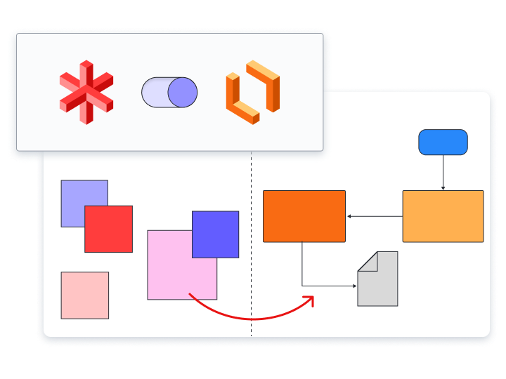 Seamlessly switch between Lucidchart and Lucidspark within the same canvas. Use Lucidspark to collaborate, plan, and clarify work to be done during Agile events, and then turn to Lucidchart’s intelligent diagramming capabilities to visualize and document architecture, user flows, and more.