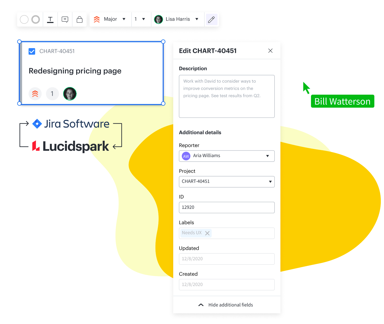 Die Zwei-Wege-Synchronisation sorgt dafür, dass alle Änderungen automatisch in Lucidspark und Jira übernommen werden. Verschwenden Sie keine Zeit mit der Aktualisierung von Informationen in mehreren Apps.