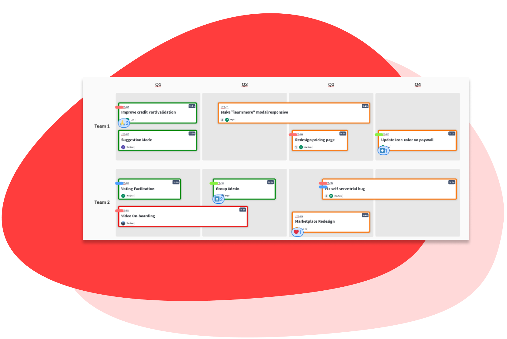 Fügen Sie Teammitglieder zu bestimmten Cards hinzu, damit Ihre Kollegen genau wissen, woran sie arbeiten. Des Weiteren können Sie per Abstimmung ermitteln, welchen Cards Priorität eingeräumt werden soll.