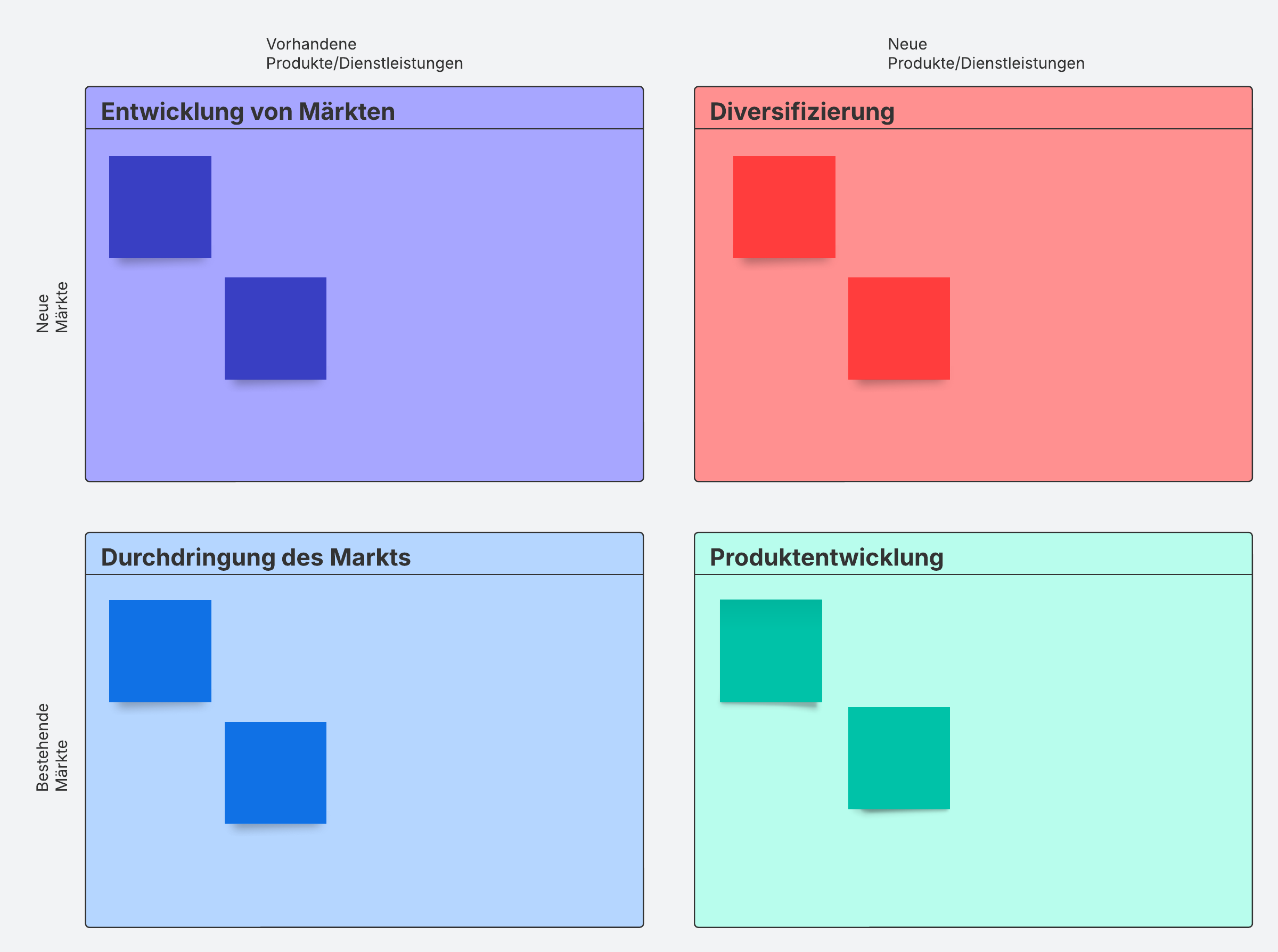 Gestalten Sie Ihre strategische Planung noch effizienter mit dieser Vorlage für eine Ansoff-Matrix. Bewerten Sie potenzielle Risiken, erweitern Sie Ihr Geschäft und erschließen Sie neue Märkte mit dieser Ansoff Matrix.