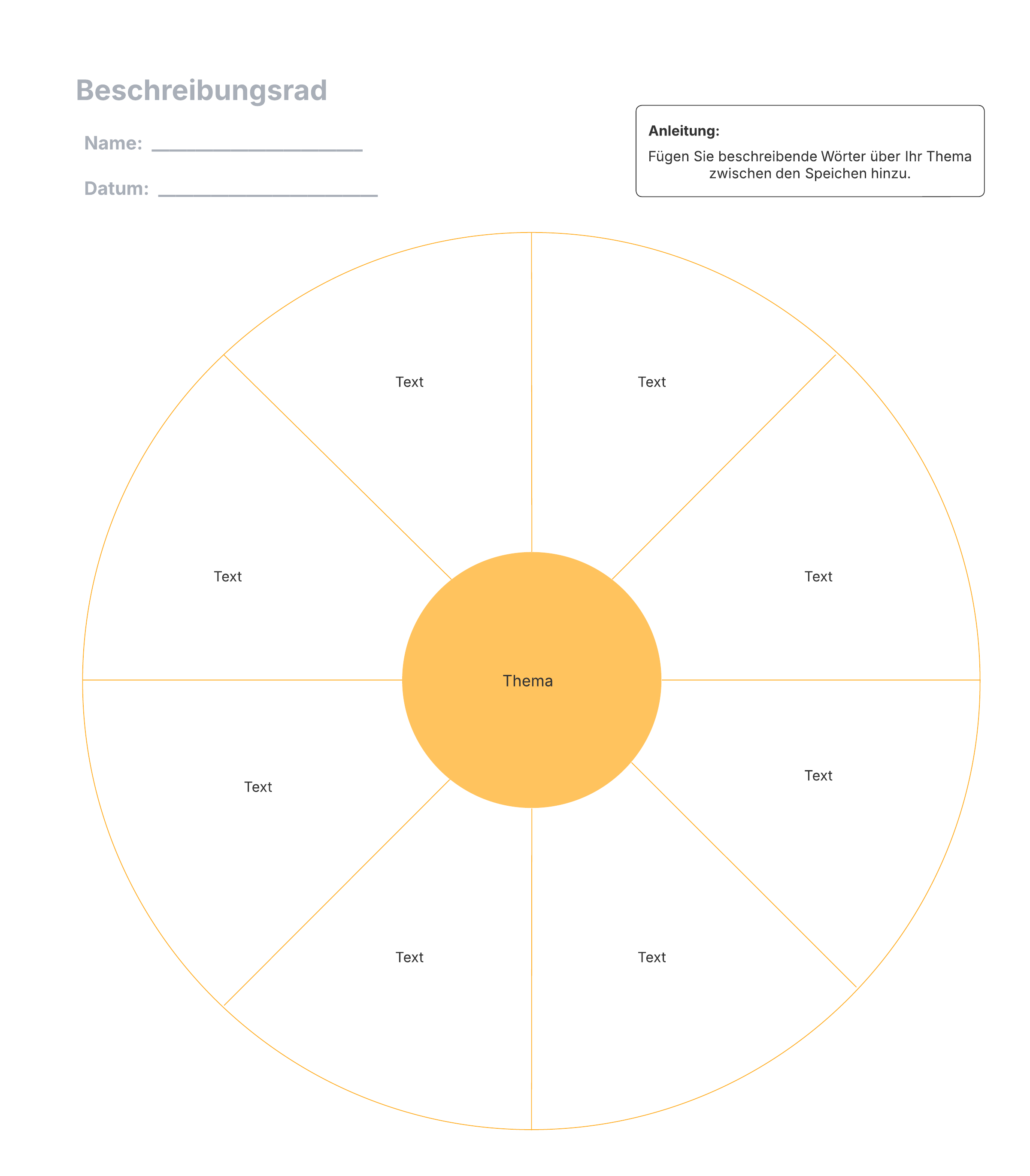 Diese Vorlage für ein Beschreibungsrad kann Ihnen folgendermaßen helfen: