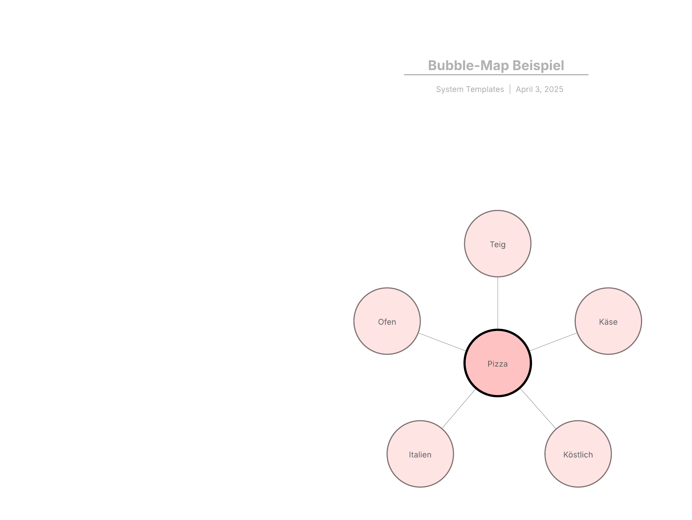 Eine Bubble-Map wird dazu verwendet, um ein Objekt genauer zu beschreiben. Öffnen Sie diese Bubble-Map Vorlage und bearbeiten Sie sie nach Belieben.