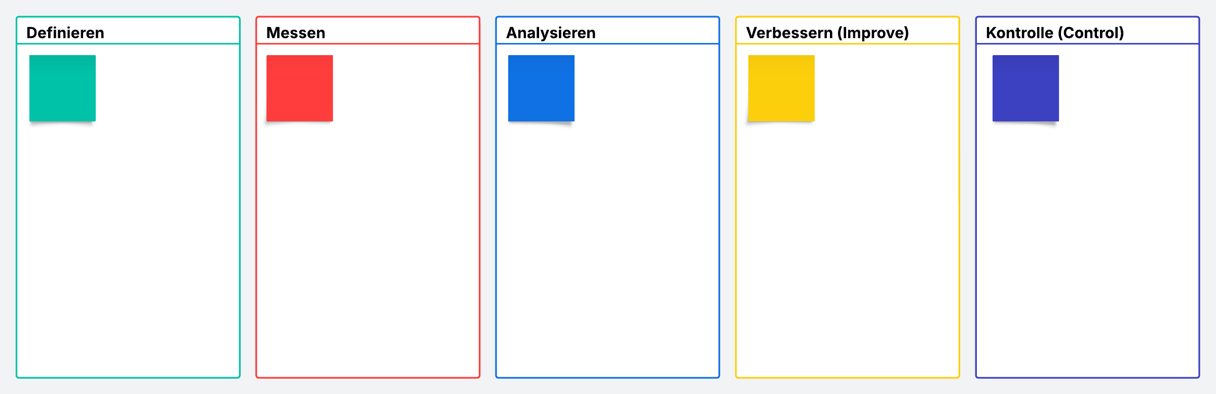 Der DMAIC Prozess bietet einen strukturierten Ansatz zum Erstellen einer gut definierten Projektroadmap. DMAIC steht dabei für die Schritte, die für die Definition der Projektroadmap verwendet werden, wodurch diese dann auf datengestützten Eingaben und Ergebnissen basiert.
