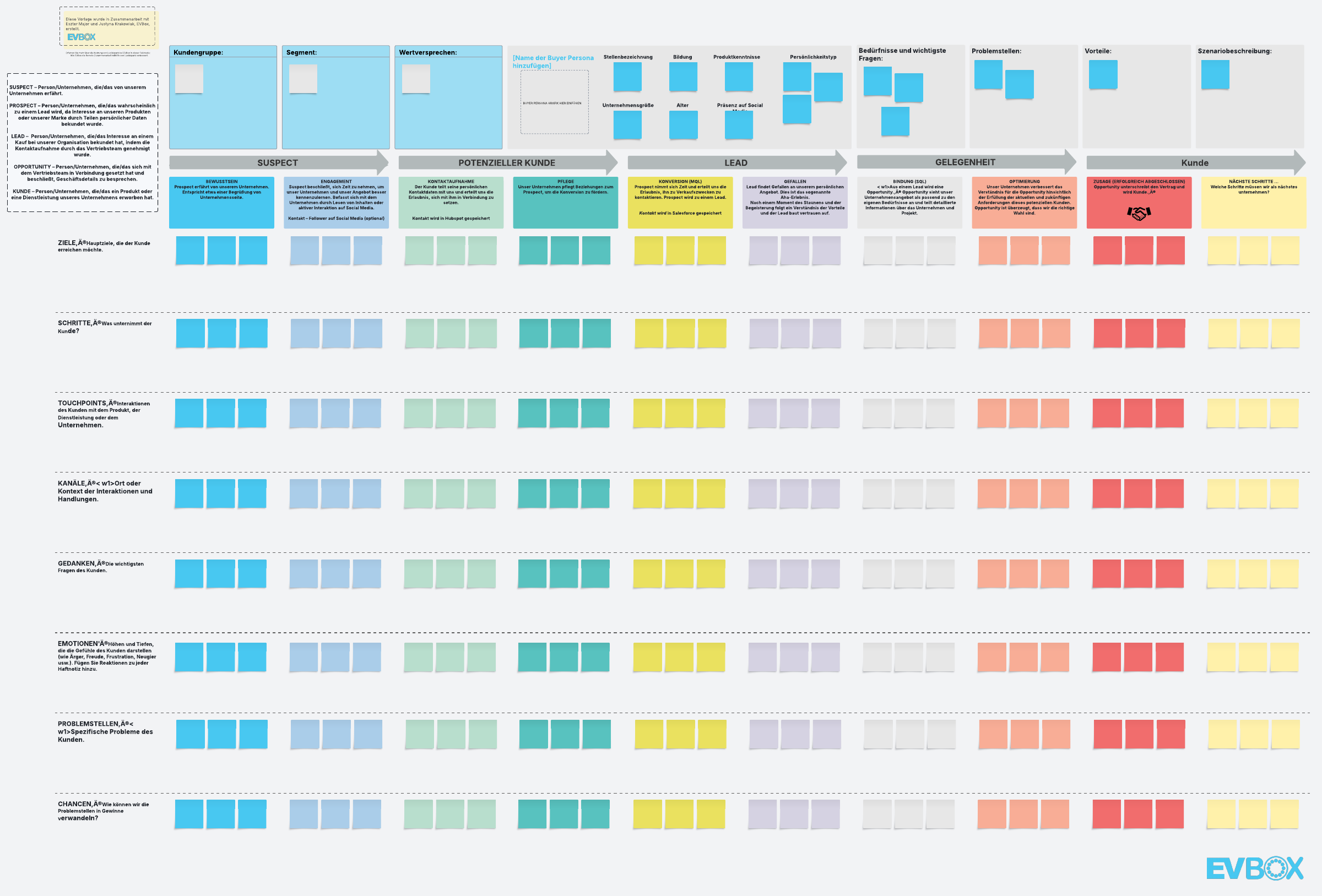 Identifizieren Sie jeden Schritt der Journey einer Buyer Persona mit dieser Vorlage von EVBox für die Customer Journey.