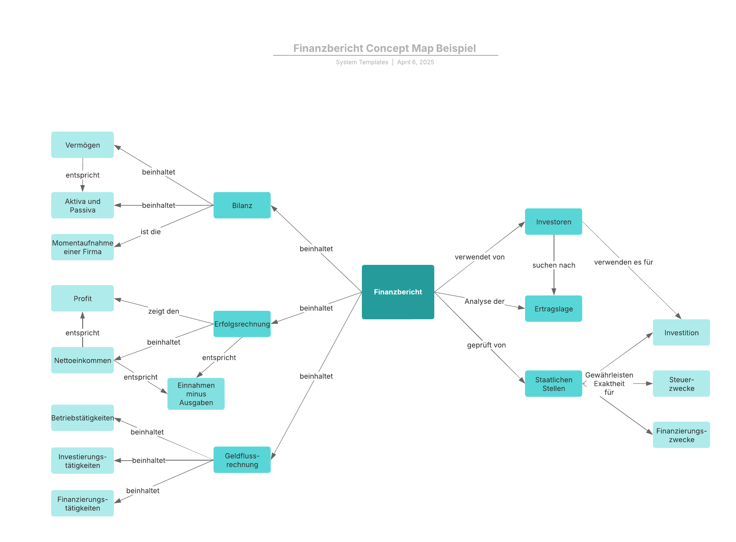Eine Concept Map hilft Zusammenhänge zwischen verschiedenen Begriffen zu visualisieren und das Verständnis von komplexen Themen zu testen. Mit einer Concept Map können Gedanken geordnet und Informationen grafisch dargestellt werden.