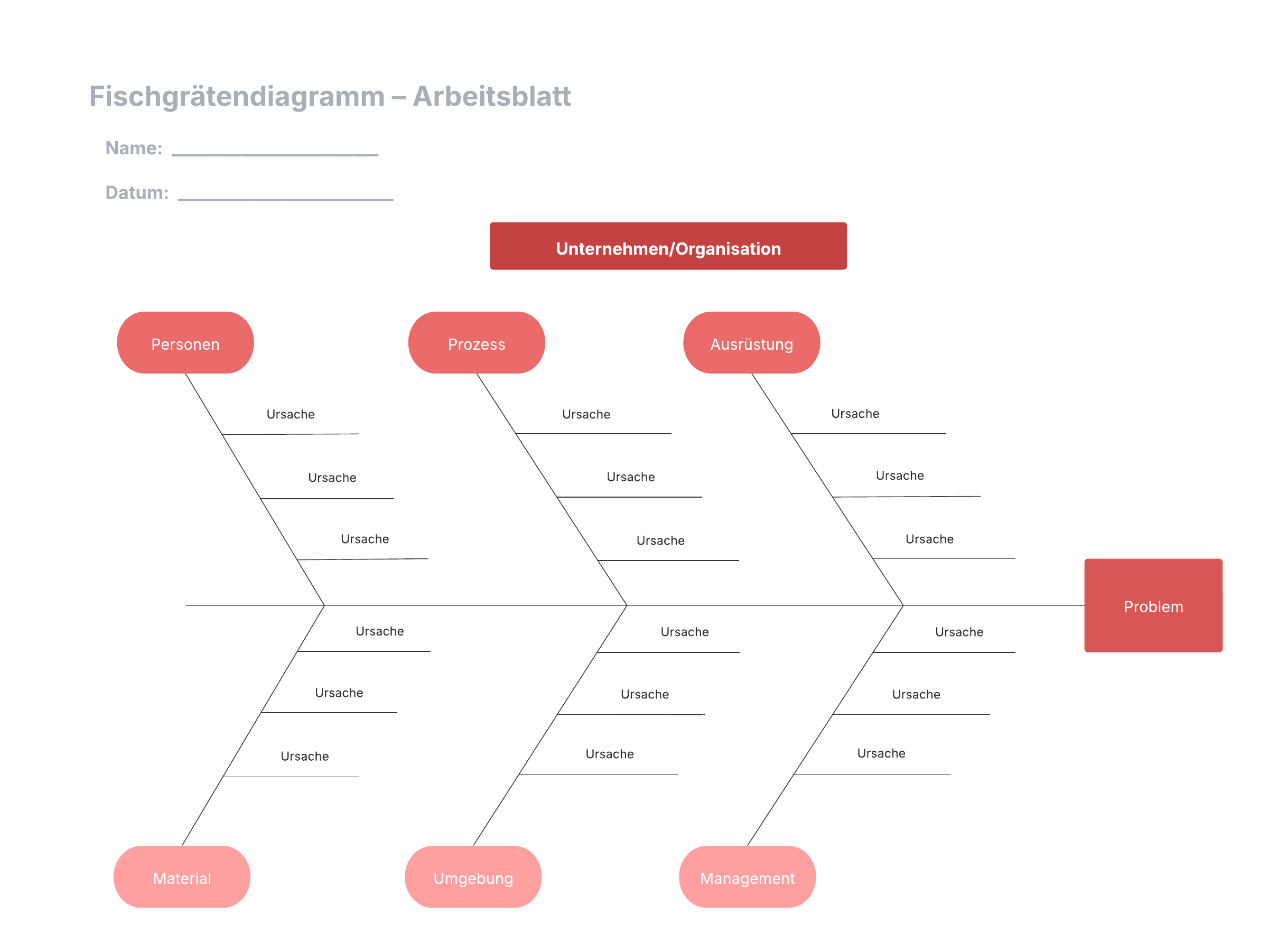 Mit diesem Arbeitsblatt für ein Fischgrätendiagramm können Sie:
