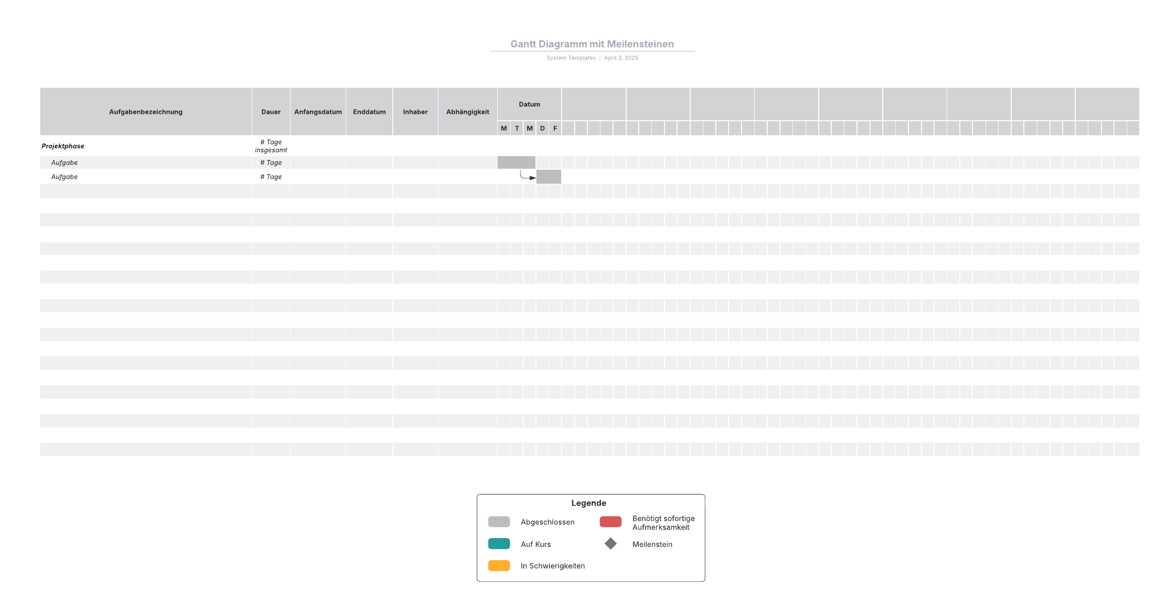 Gantt-Diagramm Vorlage mit Meilensteinen