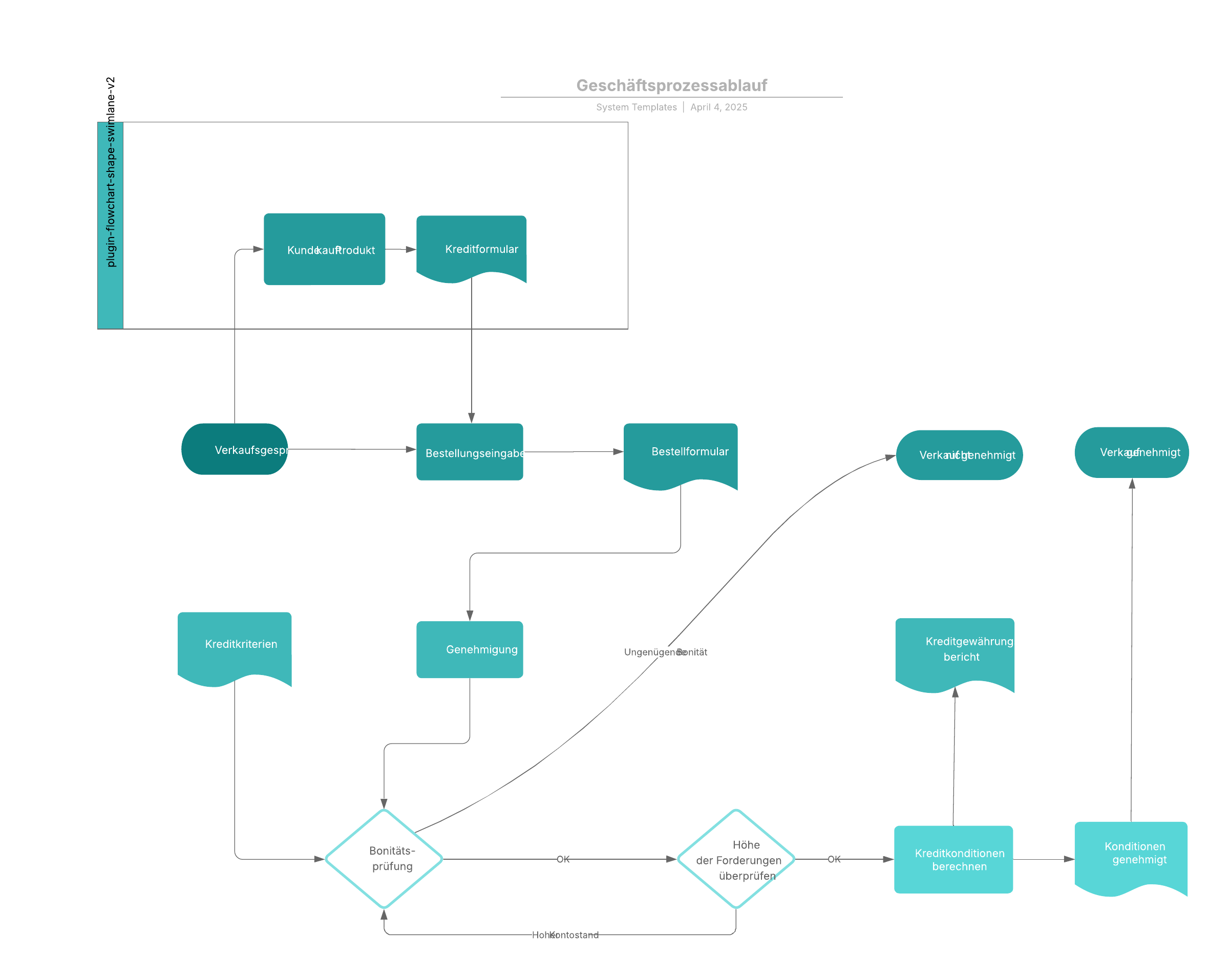 Mit dieser Vorlage können Sie einen Geschäftsprozessablauf anschaulich darstellen. Passen Sie die Verantwortungsbereiche individuell an, um die Prozessphasen weiter zu untergliedern.
