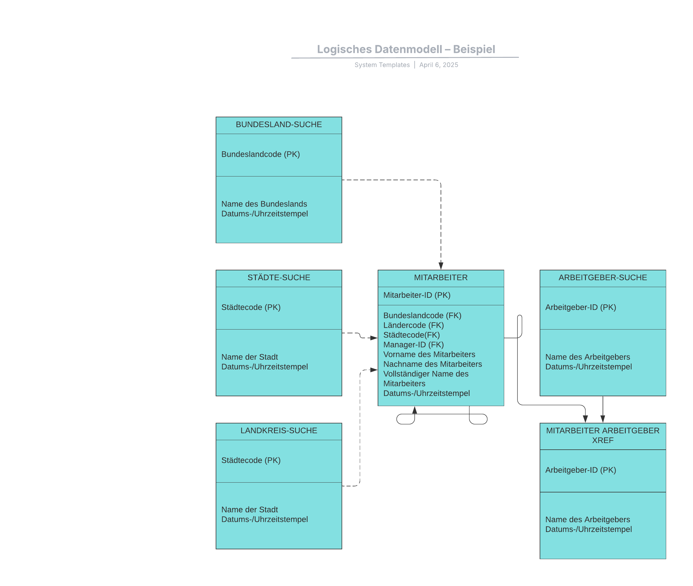 Durch Öffnen dieser Vorlage wird ein detailliertes Beispiel für ein logisches Datenmodell angezeigt, das Sie an Ihren Anwendungsfall anpassen können.