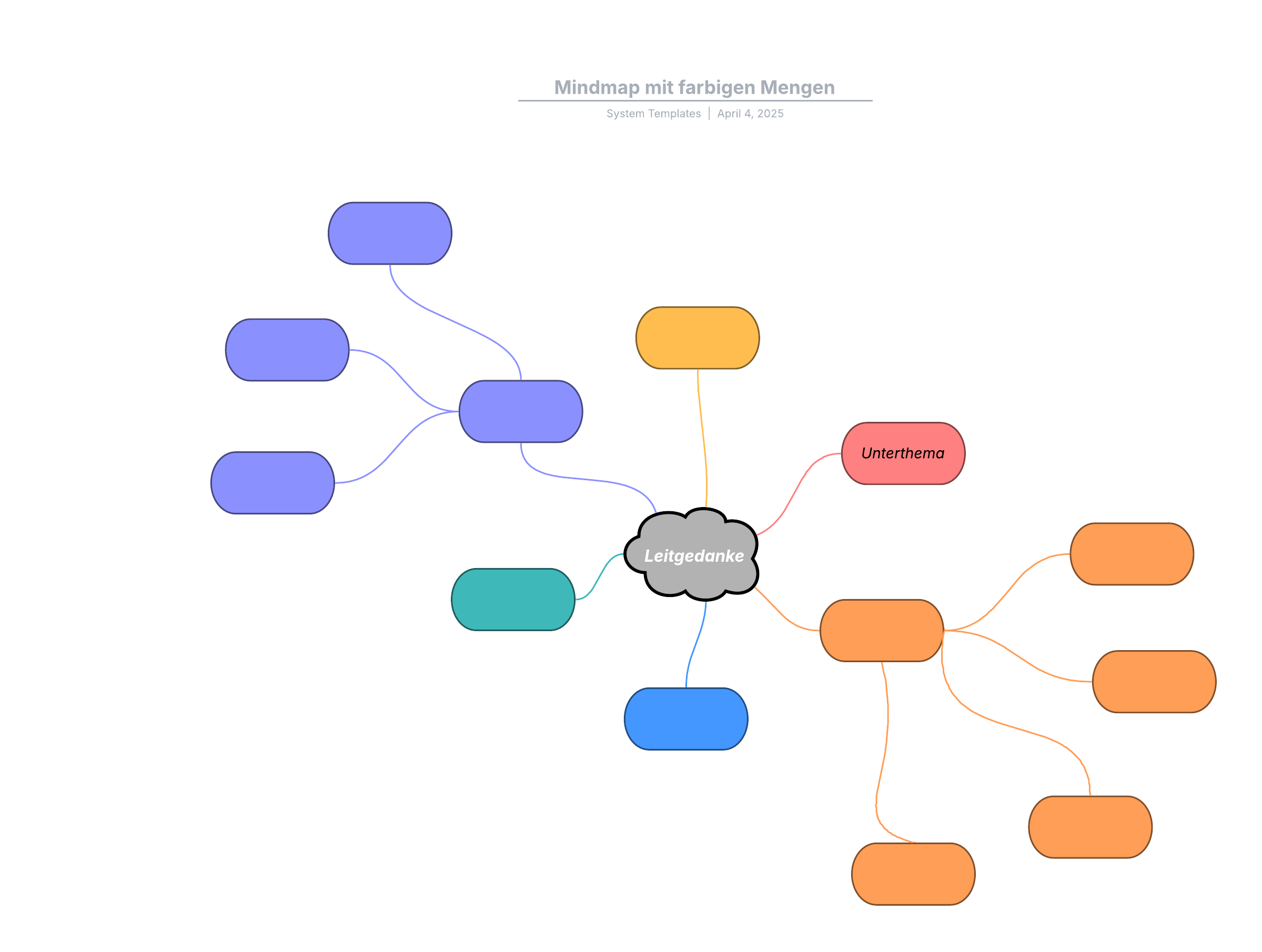 Mit dieser Vorlage für eine Mindmap mit farbigen Mengen können Sie: