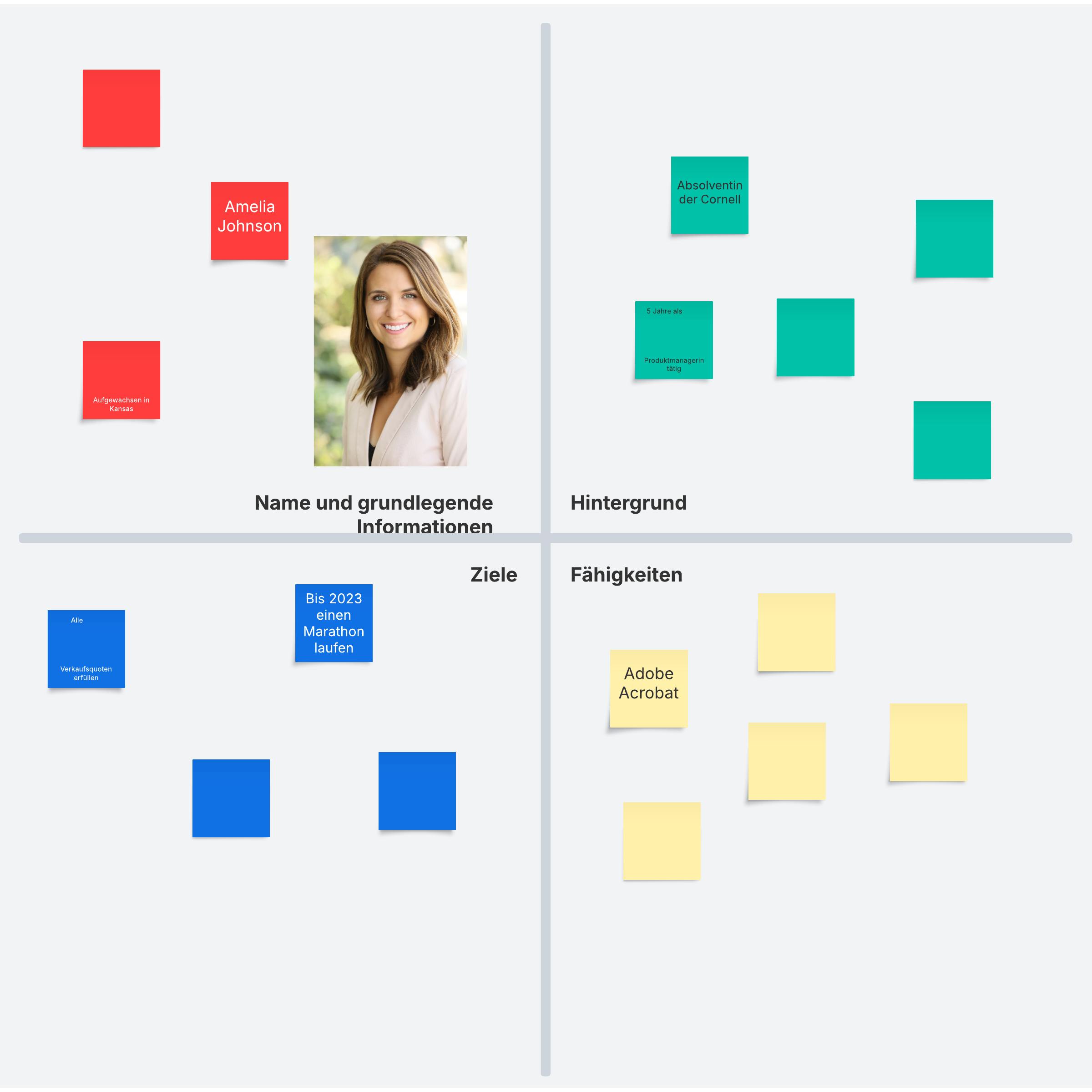 Identifizieren Sie die Kernaspekte Ihrer Persona, wie deren Fähigkeiten, Interessen und Hintergrundinformationen. Teilen Sie diese Informationen mit Ihrem Team um alle Beteiligten auf den selben Stand zu bringen.