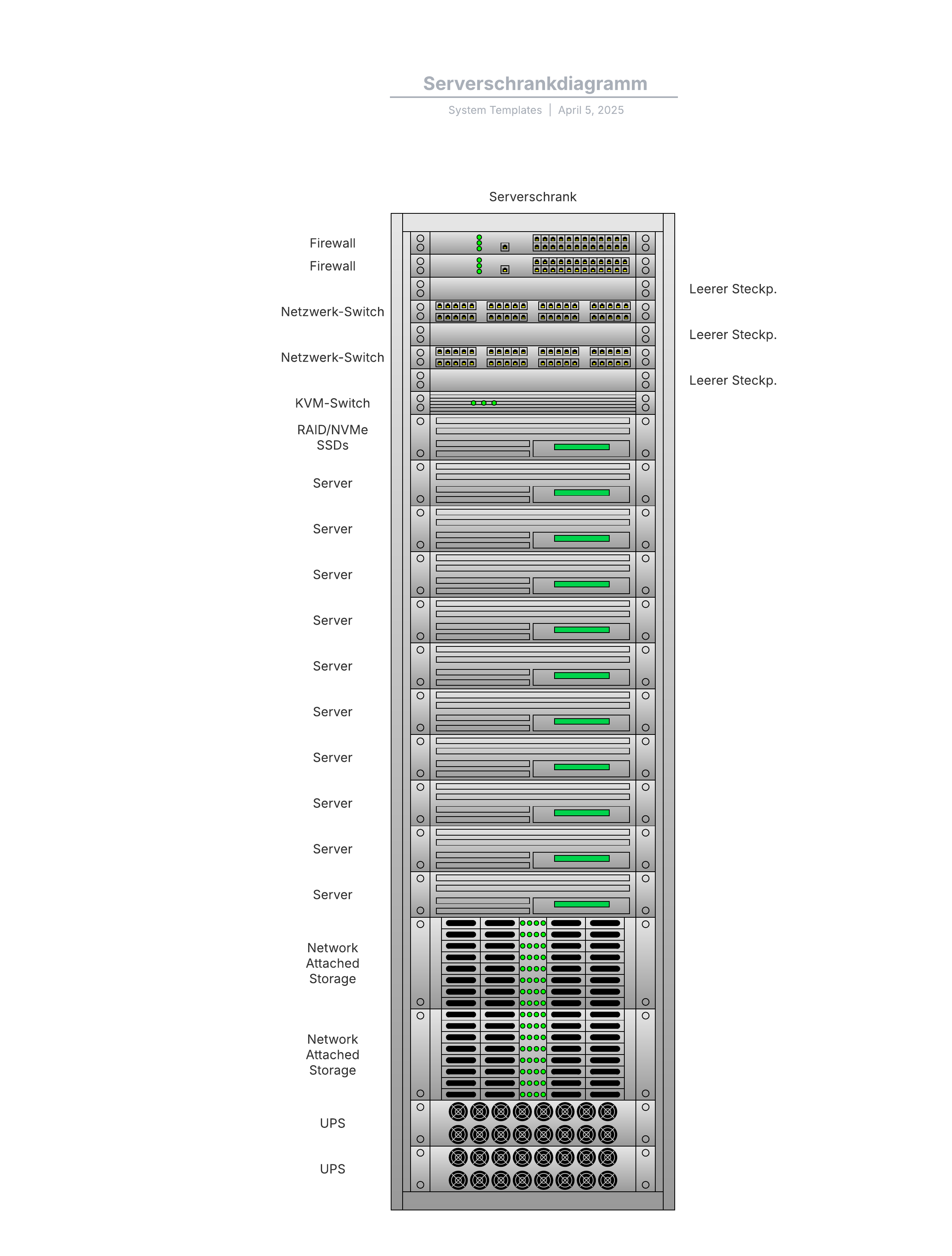 Öffnen Sie diese Vorlage, um ein Beispiel für ein Serverschrankdiagramm anzuzeigen, das Sie an Ihren Anwendungsfall anpassen können.