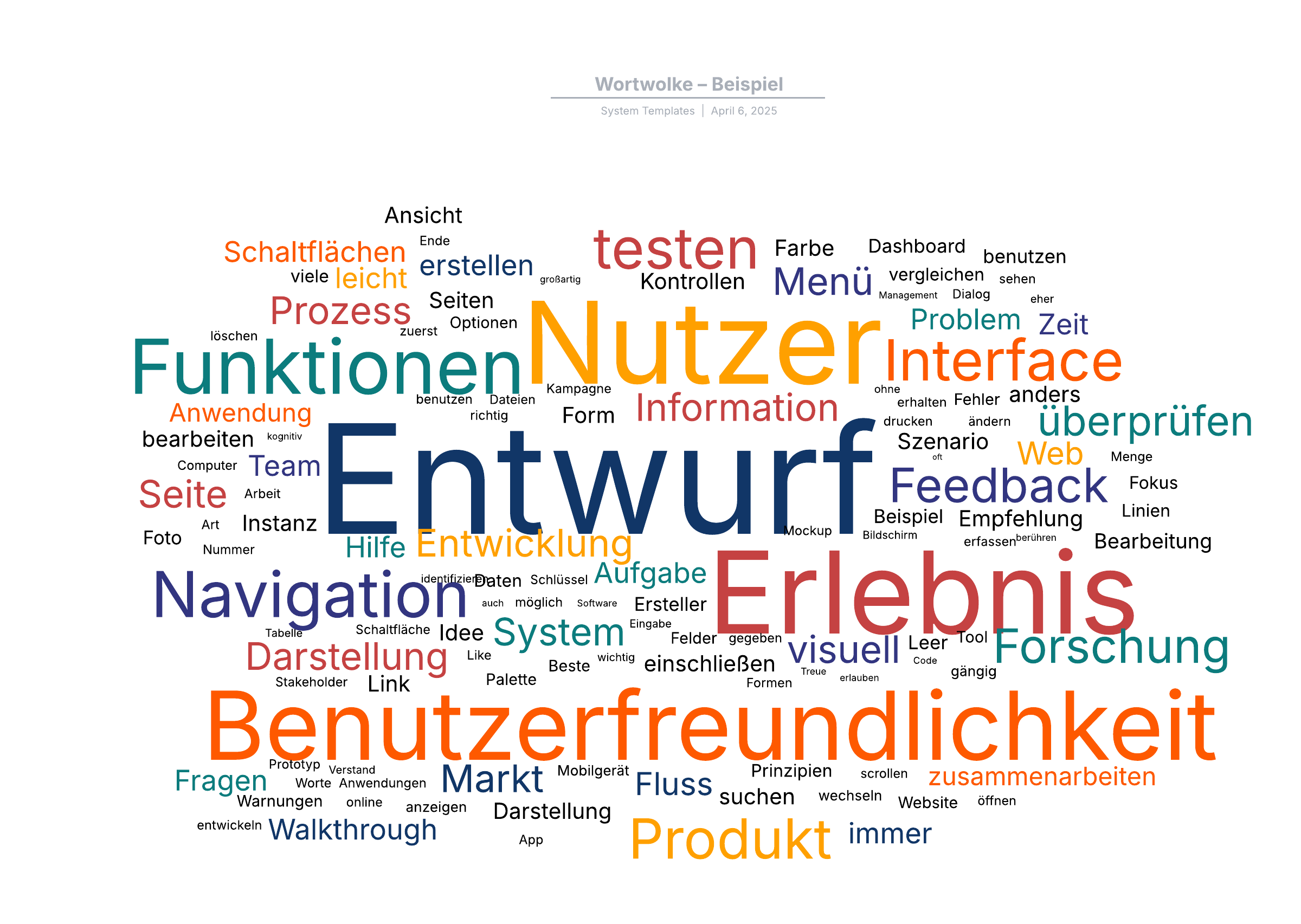 Durch Öffnen dieser Vorlage wird ein detailliertes Beispiel für eine Wortwolke angezeigt, das Sie an Ihren Anwendungsfall anpassen können.