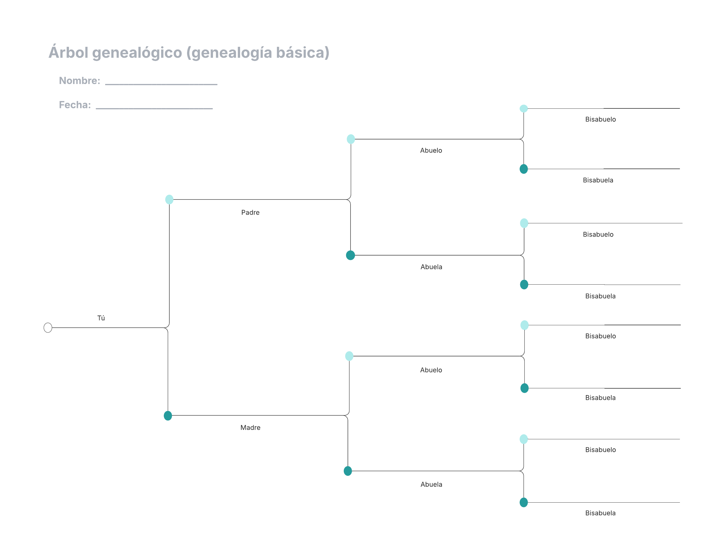 Esta plantilla de árbol genealógico (genealogía básica) puede ayudarte a lograr lo siguiente:
