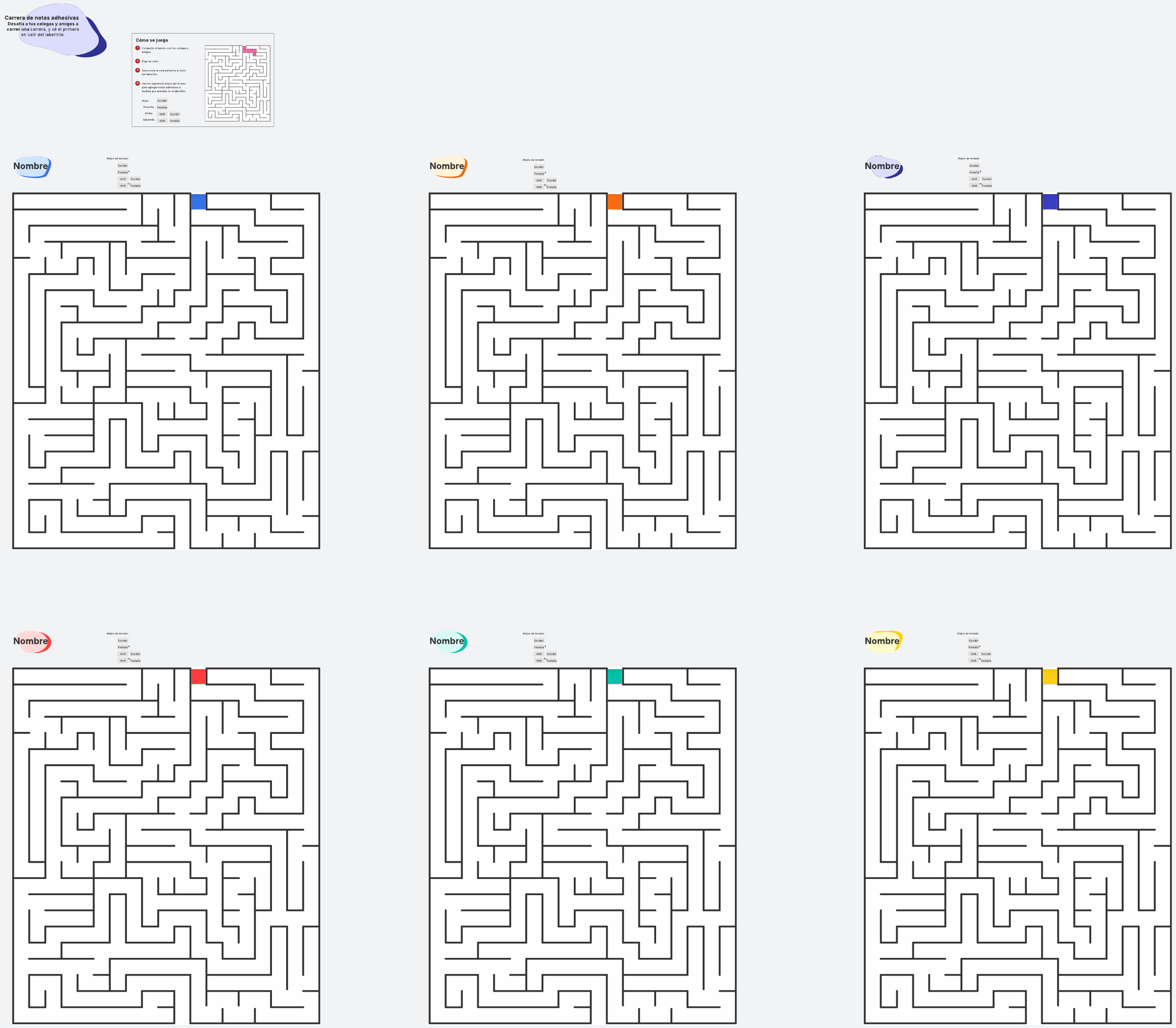 Crea un equipo colaborativo y unido, y diviértete. Desafía a tus colegas y amigos a una carrera de notas adhesivas y ve quién logra salir primero del laberinto.