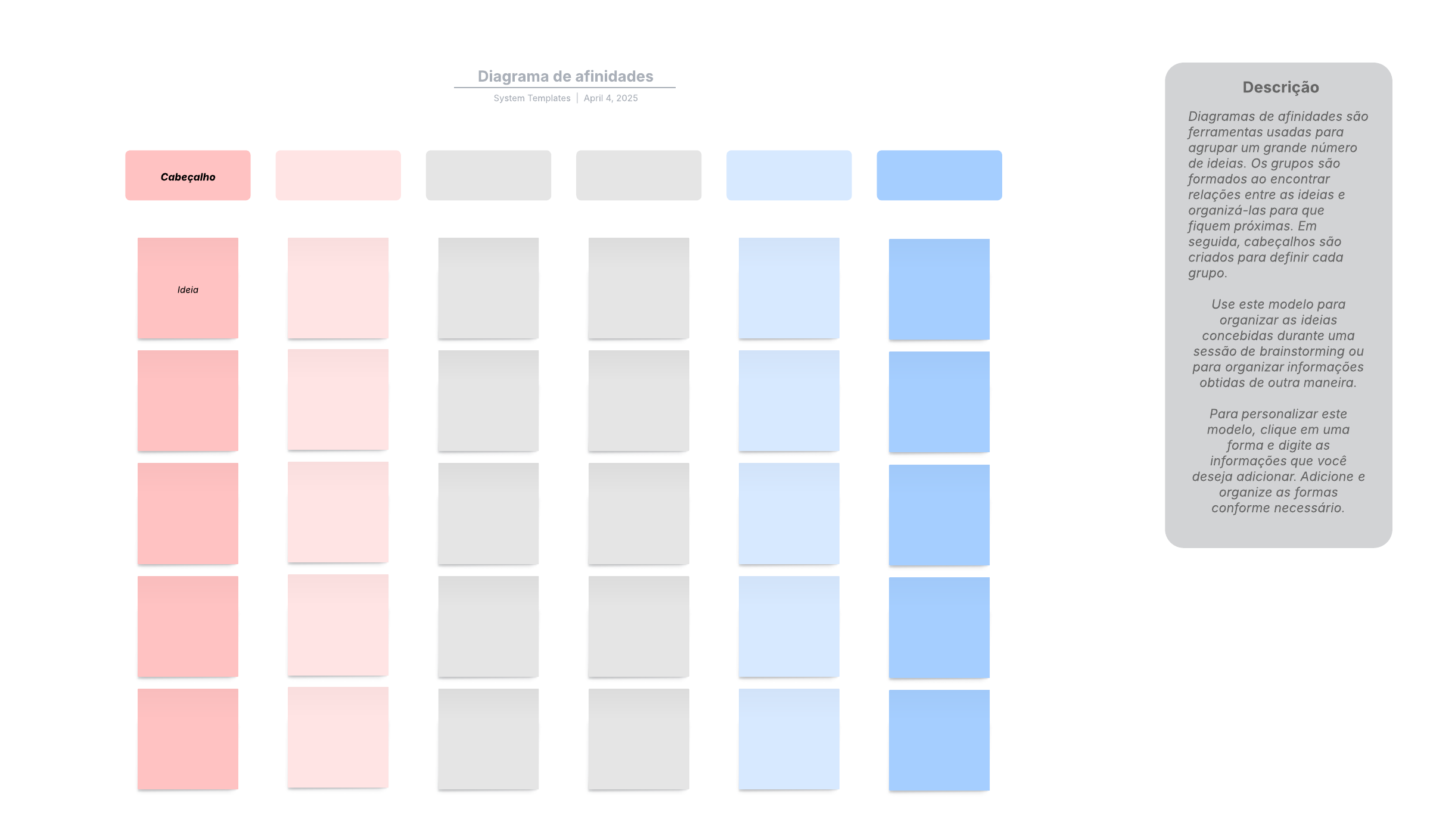 Abre esta plantilla y agrega contenido para personalizar este diagrama de afinidades según tu caso de uso.
