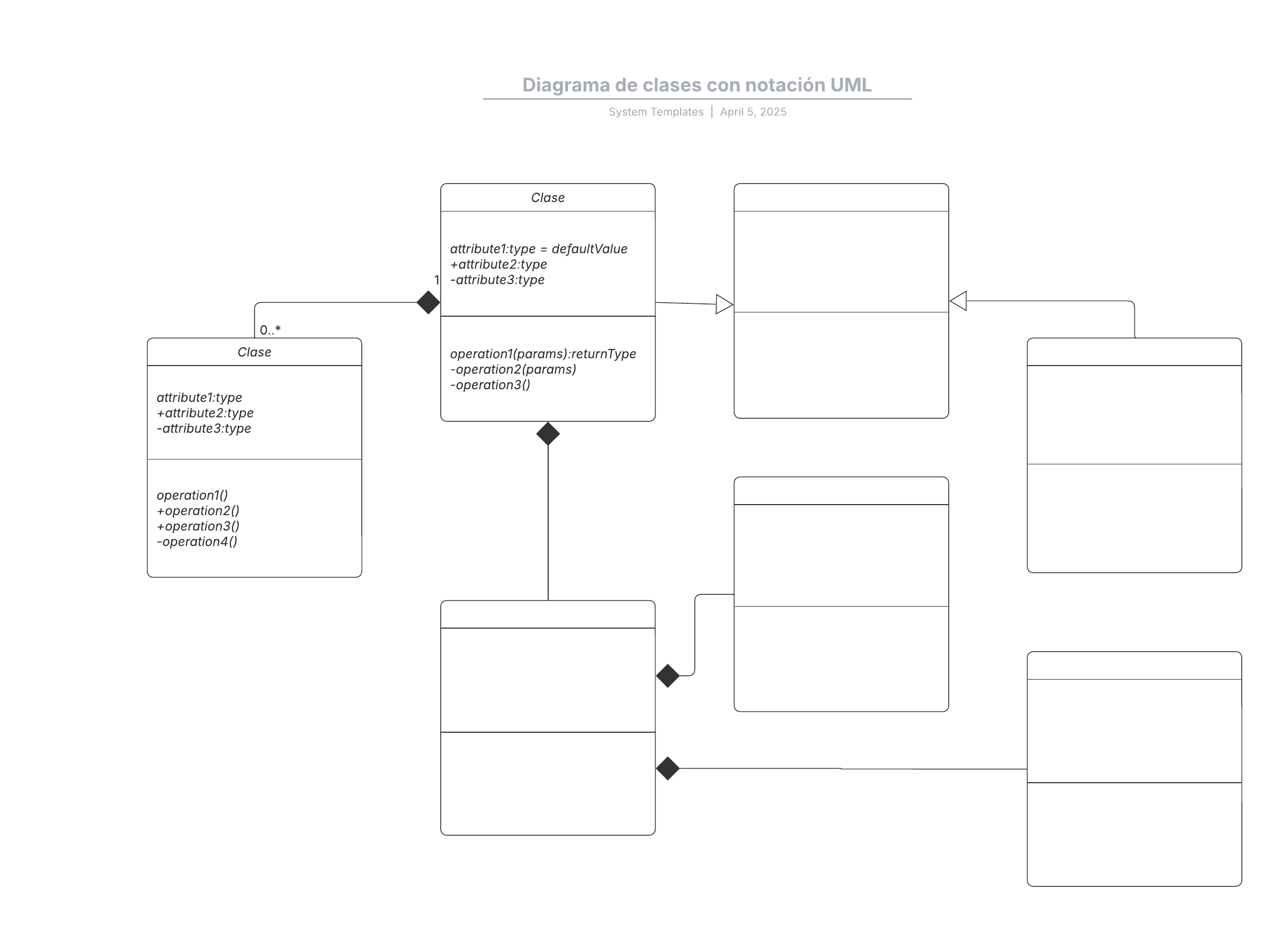 Esta plantilla de diagrama de clases con notación UML puede ayudarte a:
