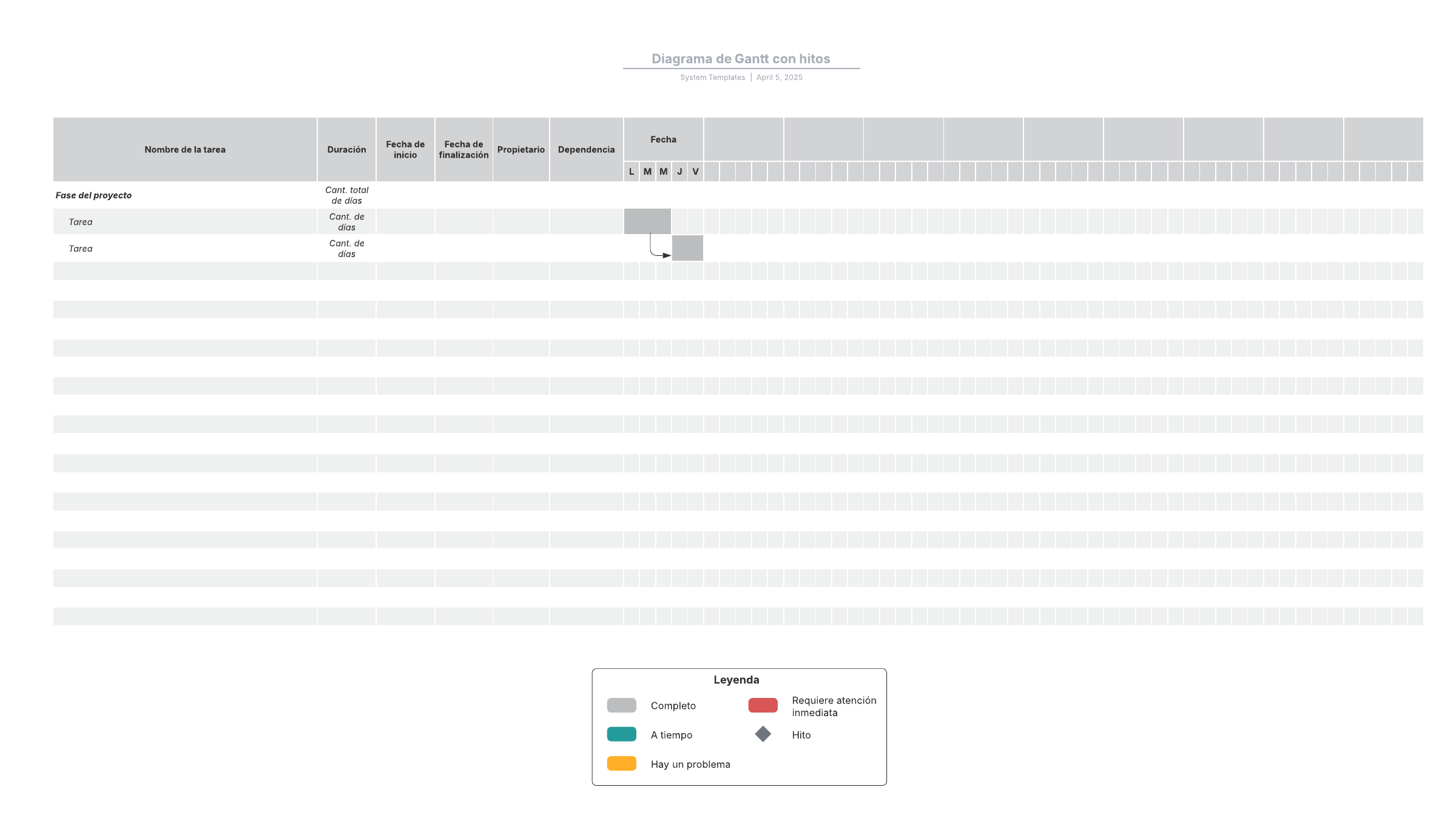 Abre esta plantilla y agrega contenido para personalizar este diagrama de gantt según tu caso de uso.