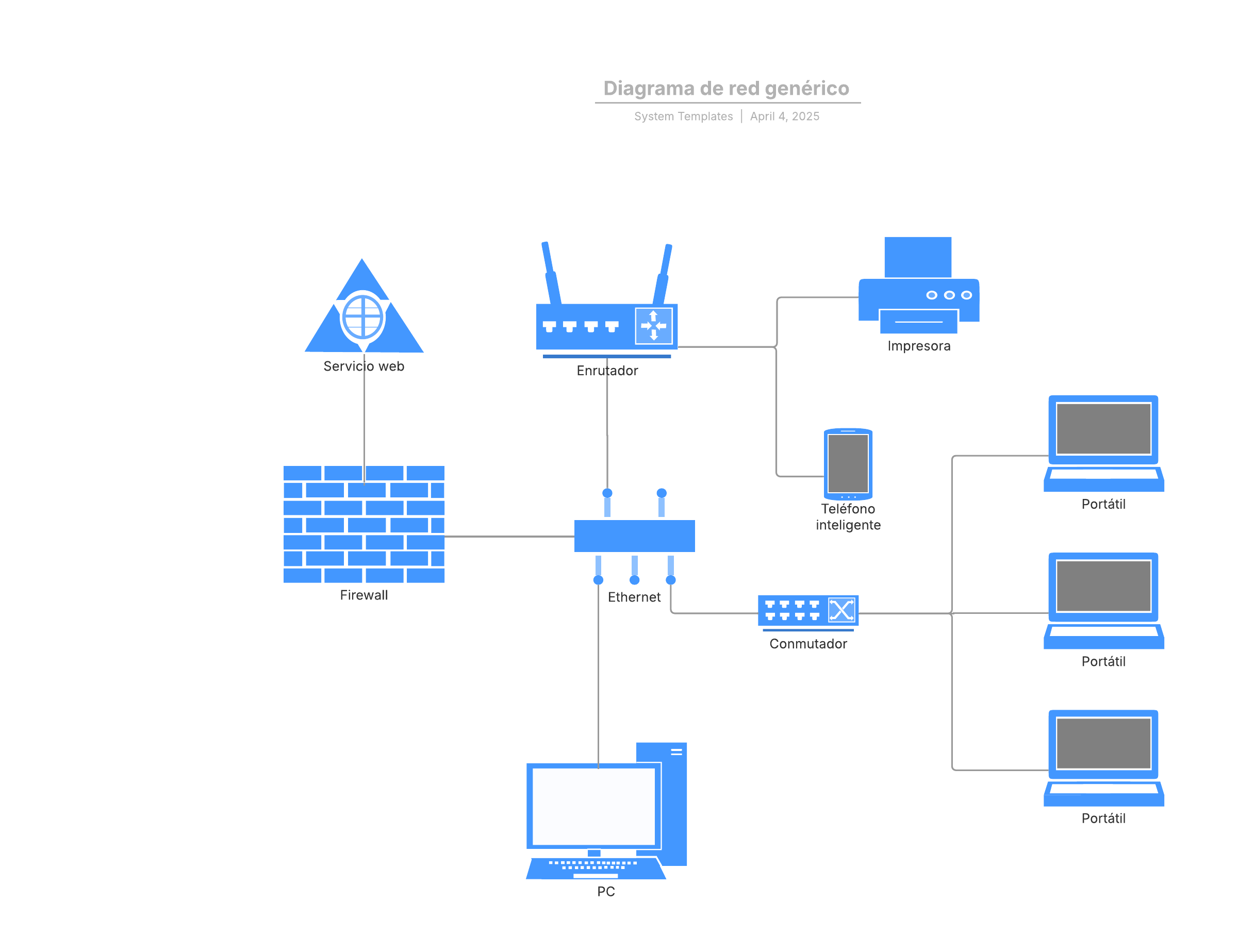 Esta plantilla de diagrama de red genérico puede ayudarte a realizar lo siguiente: