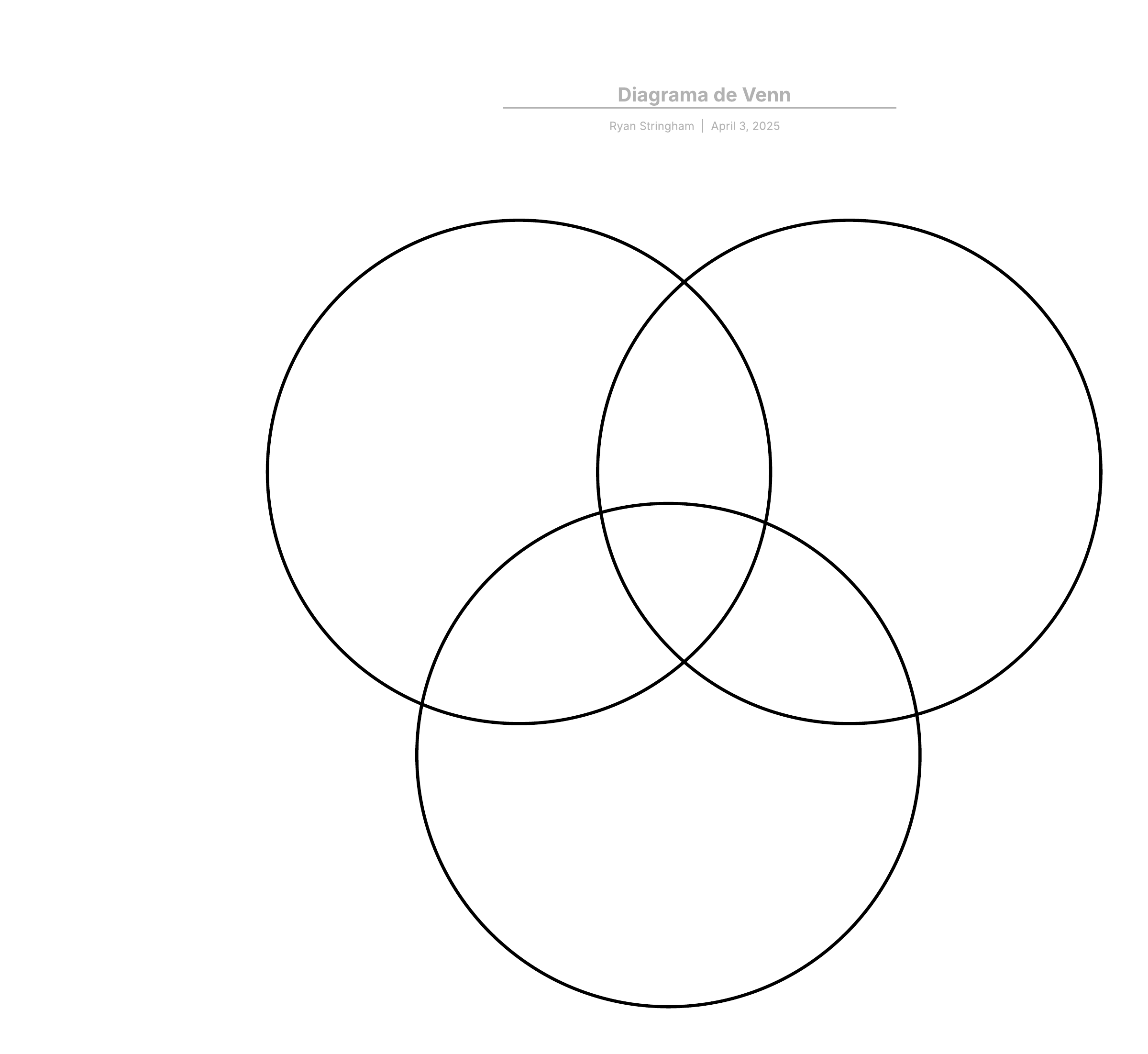 Usa esta versión para imprimir del diagrama de Venn de tres conjuntos para mostrar las semejanzas y diferencias entre tres conceptos o ideas.