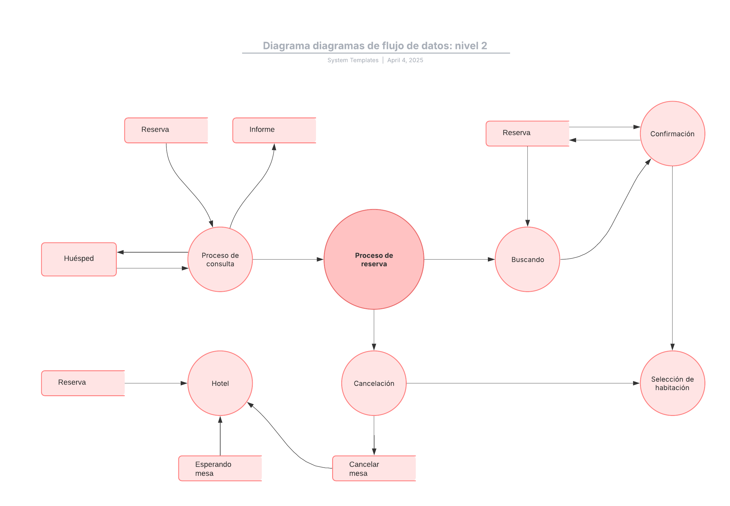 Abre esta plantilla para ver un ejemplo de diagrama de flujo de datos de nivel dos que puedes personalizar según tu caso de uso.