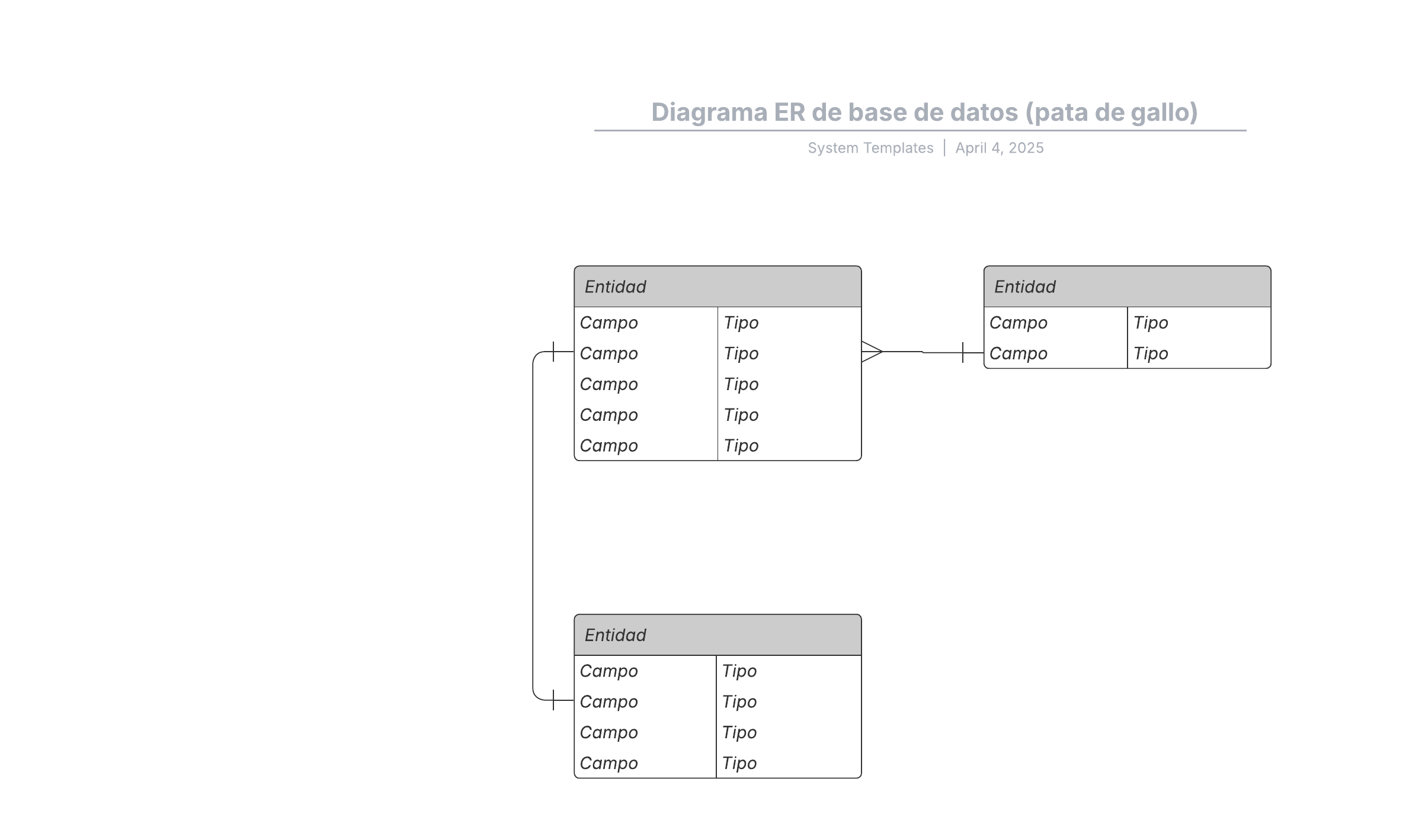 Abre esta plantilla y agrega contenido para personalizar este diagrama ER de base de datos según tu caso de uso.