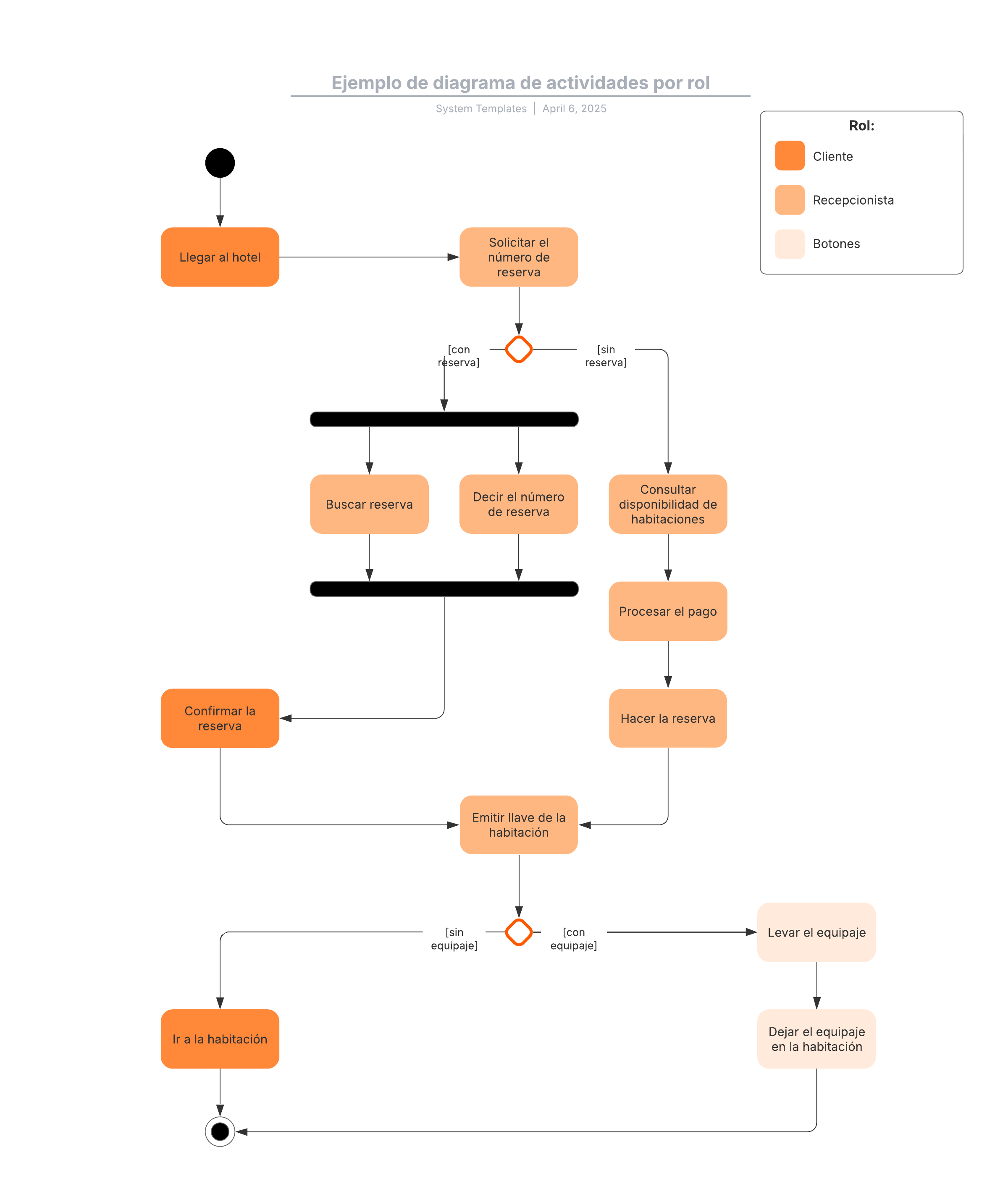 Abre esta plantilla para ver un ejemplo detallado de un diagrama de actividades que puedes personalizar según tu caso de uso.