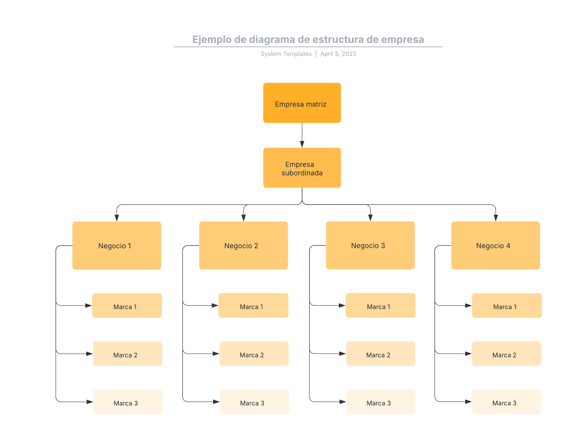 Abre esta plantilla y añade contenidos para personalizar este diagrama de estructura de empresa según tu caso de uso.