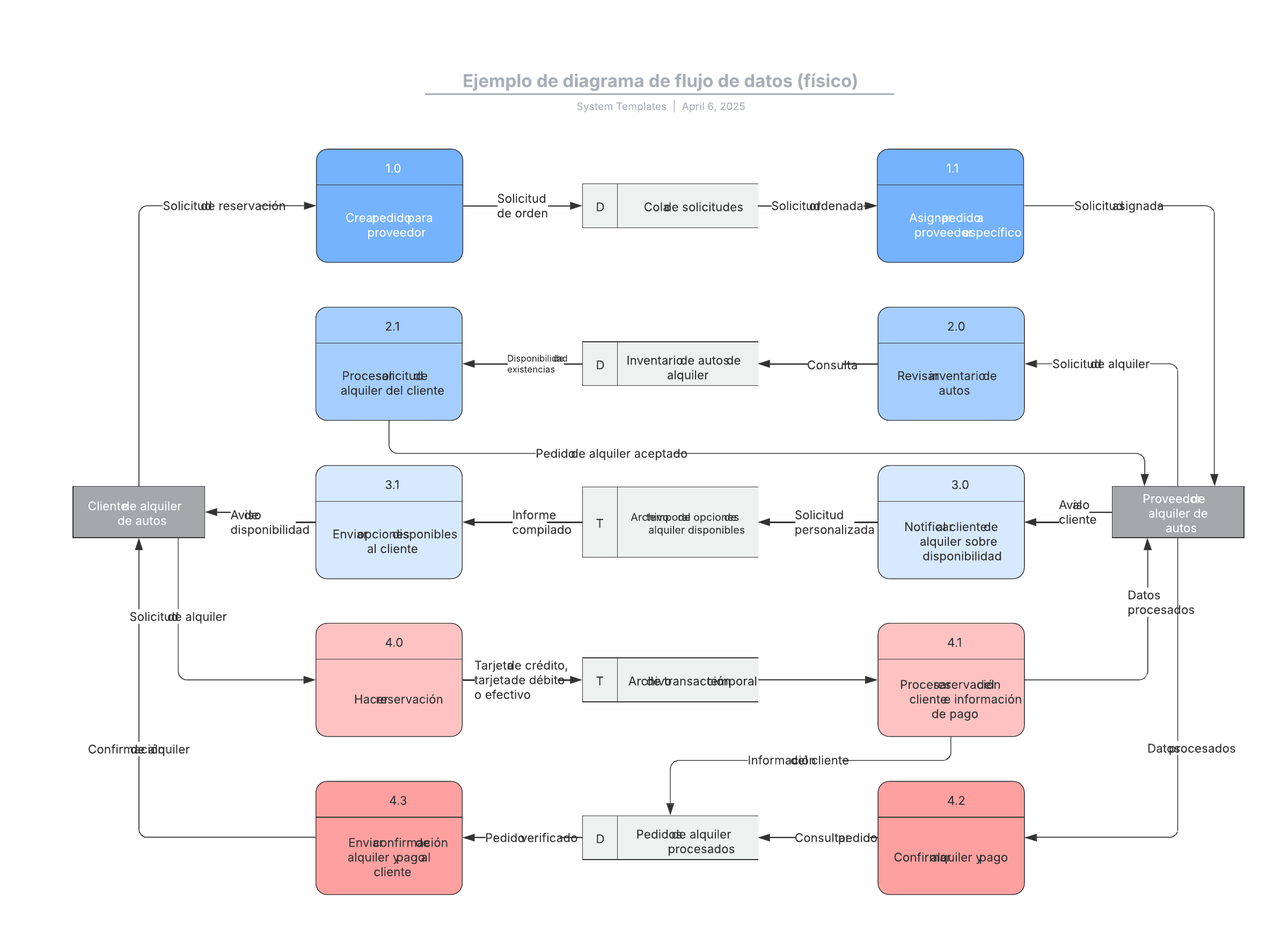 Abre esta plantilla para ver un ejemplo detallado de un diagrama de flujo de datos (físico) que puedes personalizar según tu caso de uso.
