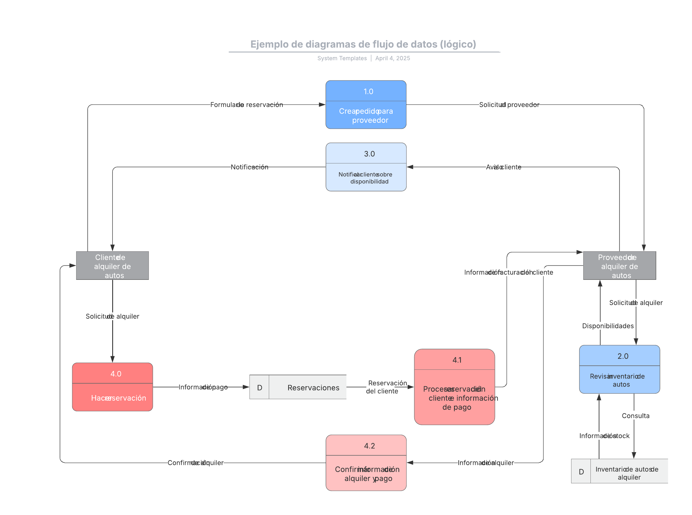 Abre esta plantilla para ver un ejemplo detallado de un diagrama de flujo de datos (lógico) que puedes personalizar según tu caso de uso.