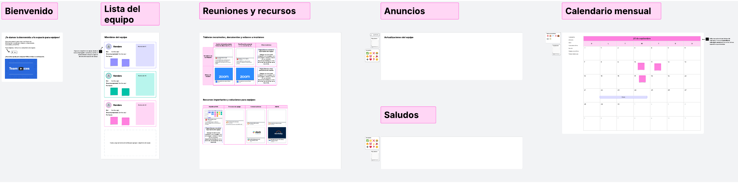 Usa este espacio para crear una fuente de información, coordinar el trabajo o simplemente conectarte y divertirte con tu equipo ágil.
