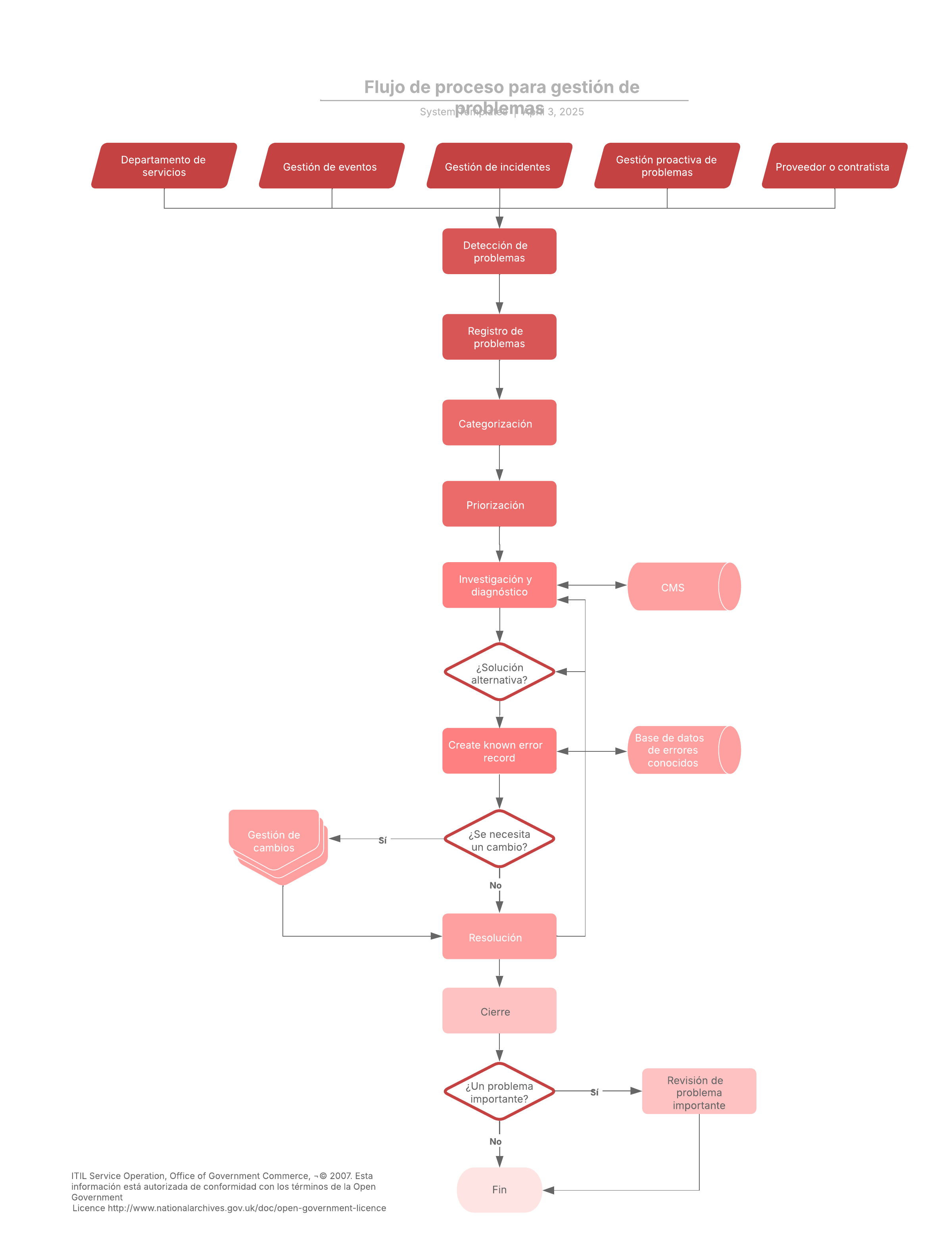 Abre esta plantilla para ver un ejemplo detallado de un flujo de proceso para gestión de problemas, la cual puedes personalizar según tu caso de uso.