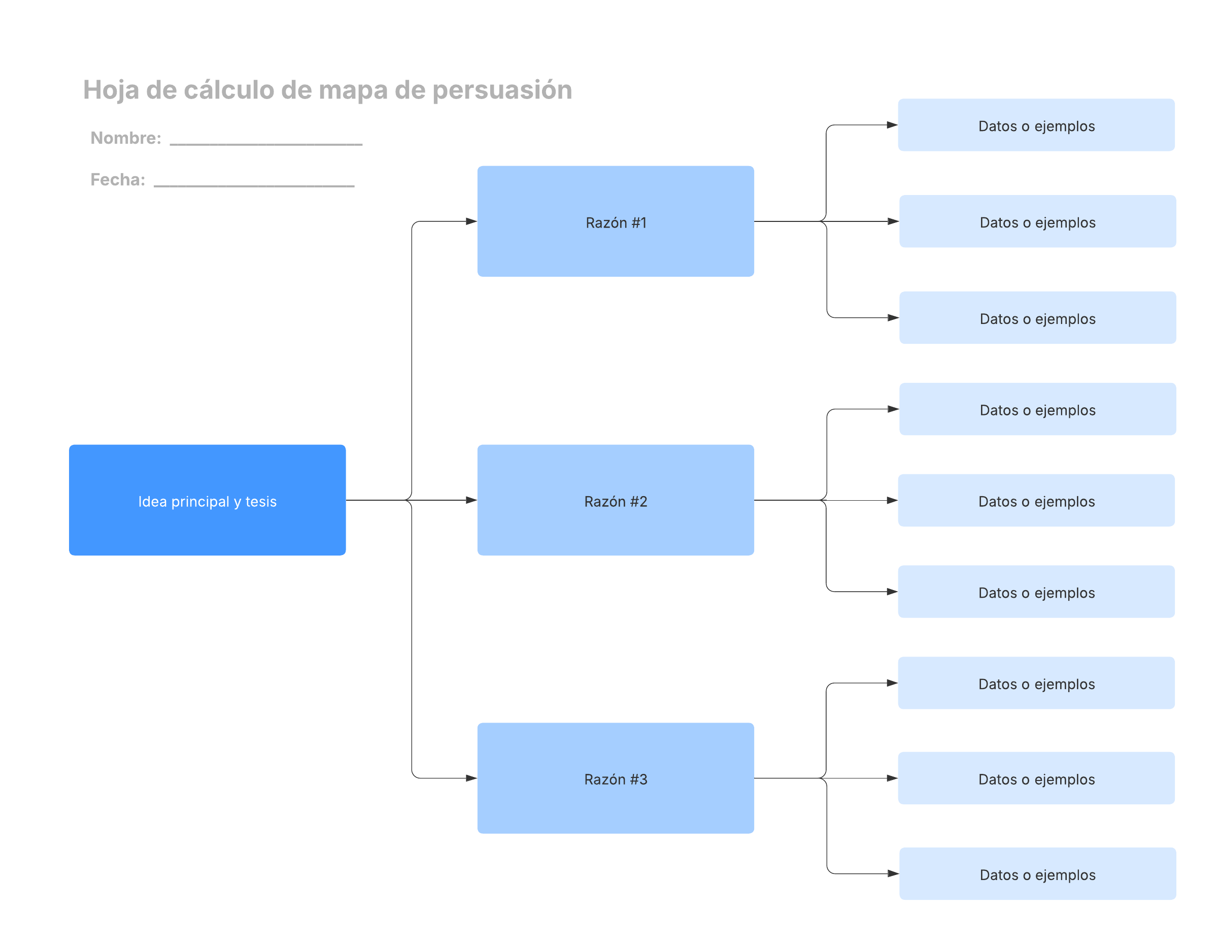 - Organizar gráficamente los argumentos para un debate o ensayo persuasivo.