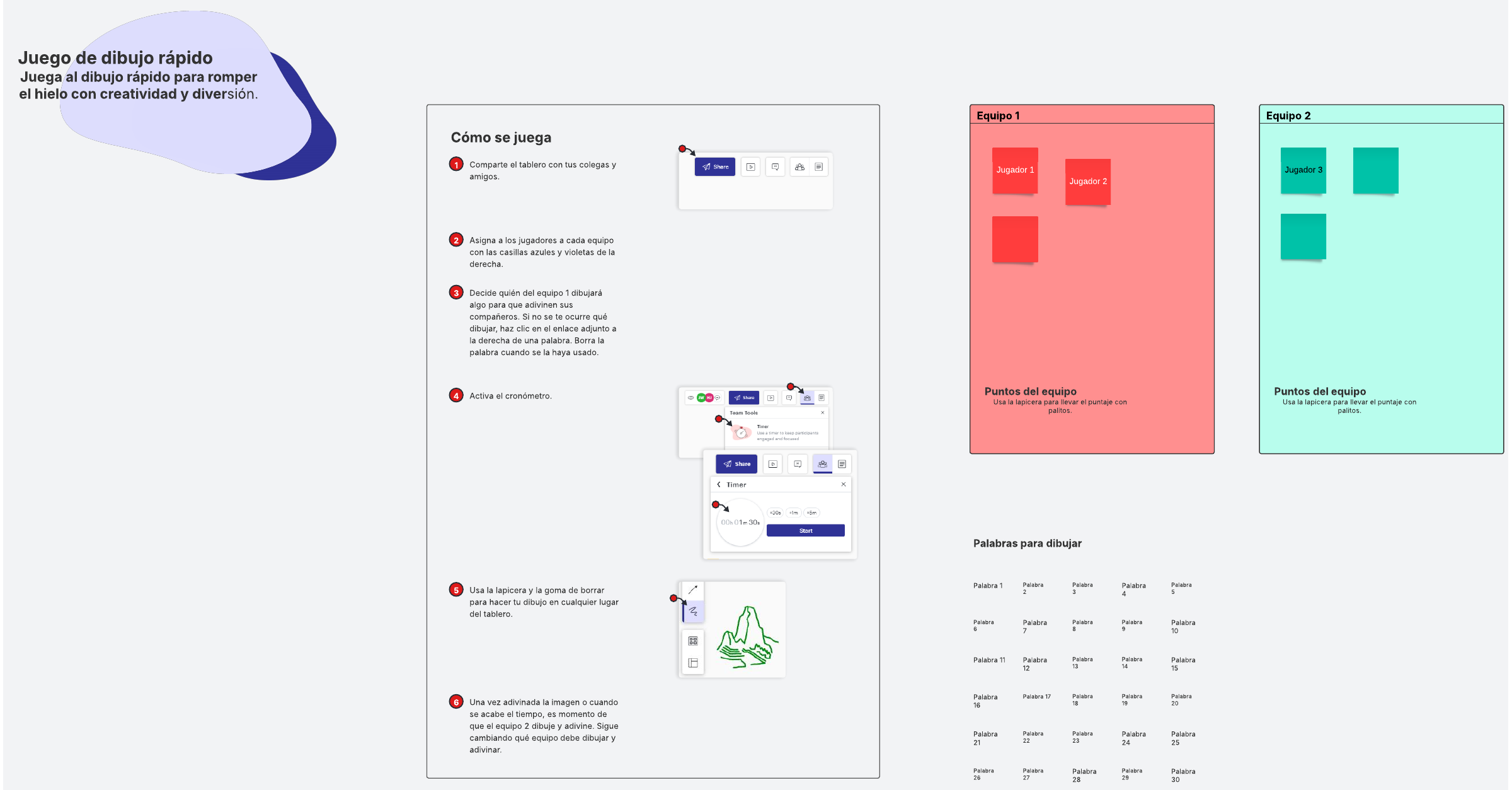 ¿Buscas una forma divertida y diferente de conectar a tu equipo? Con nuestra Plantilla dibuja y adivina en equipo, las reuniones virtuales se transforman en una actividad llena de creatividad y risas. Es el juego perfecto para romper el hielo, fomentar la comunicación y sacar a relucir el lado más divertido y creativo de todo tu equipo, sin importar dónde se encuentren.