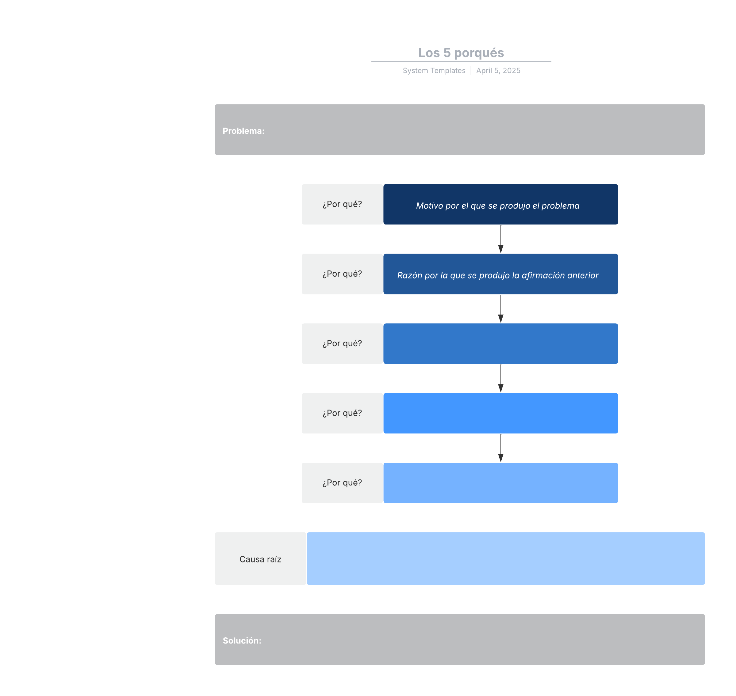 Abre esta plantilla y agrega contenido para personalizar este diagrama de los 5 porqués según tu caso de uso.