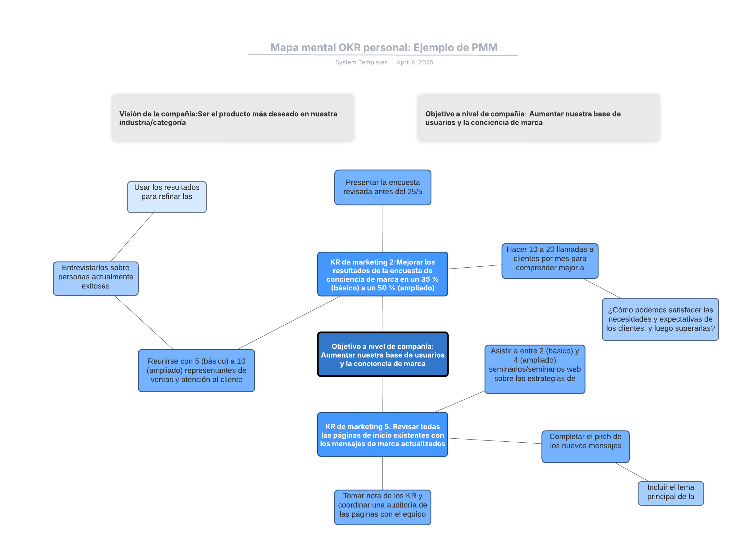 Mapa mental OKR personal: Ejemplo de PMM