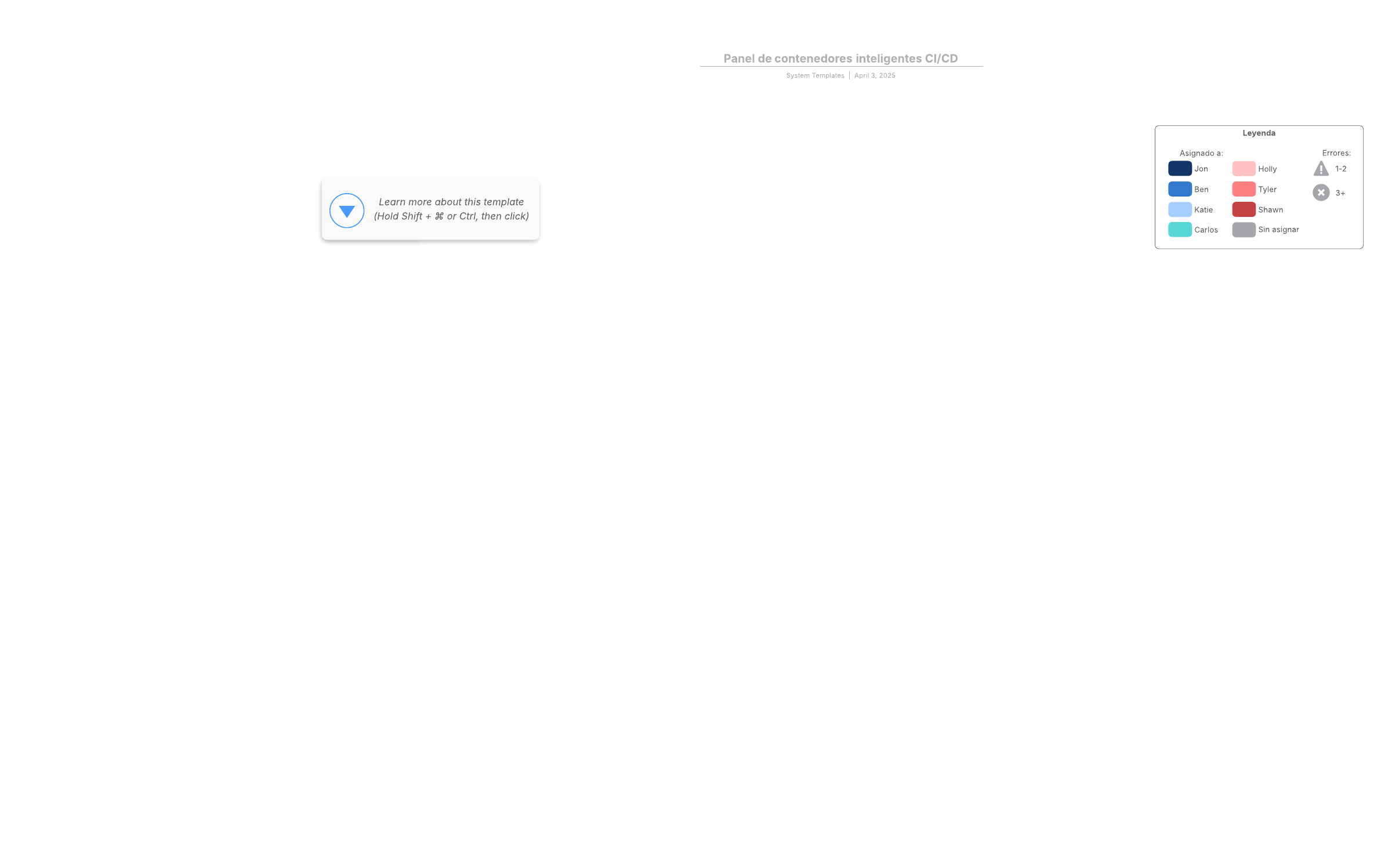 Abre esta plantilla para ver un ejemplo detallado de un panel CI/CD con contenedores inteligentes que puedes personalizar según tu caso de uso.
