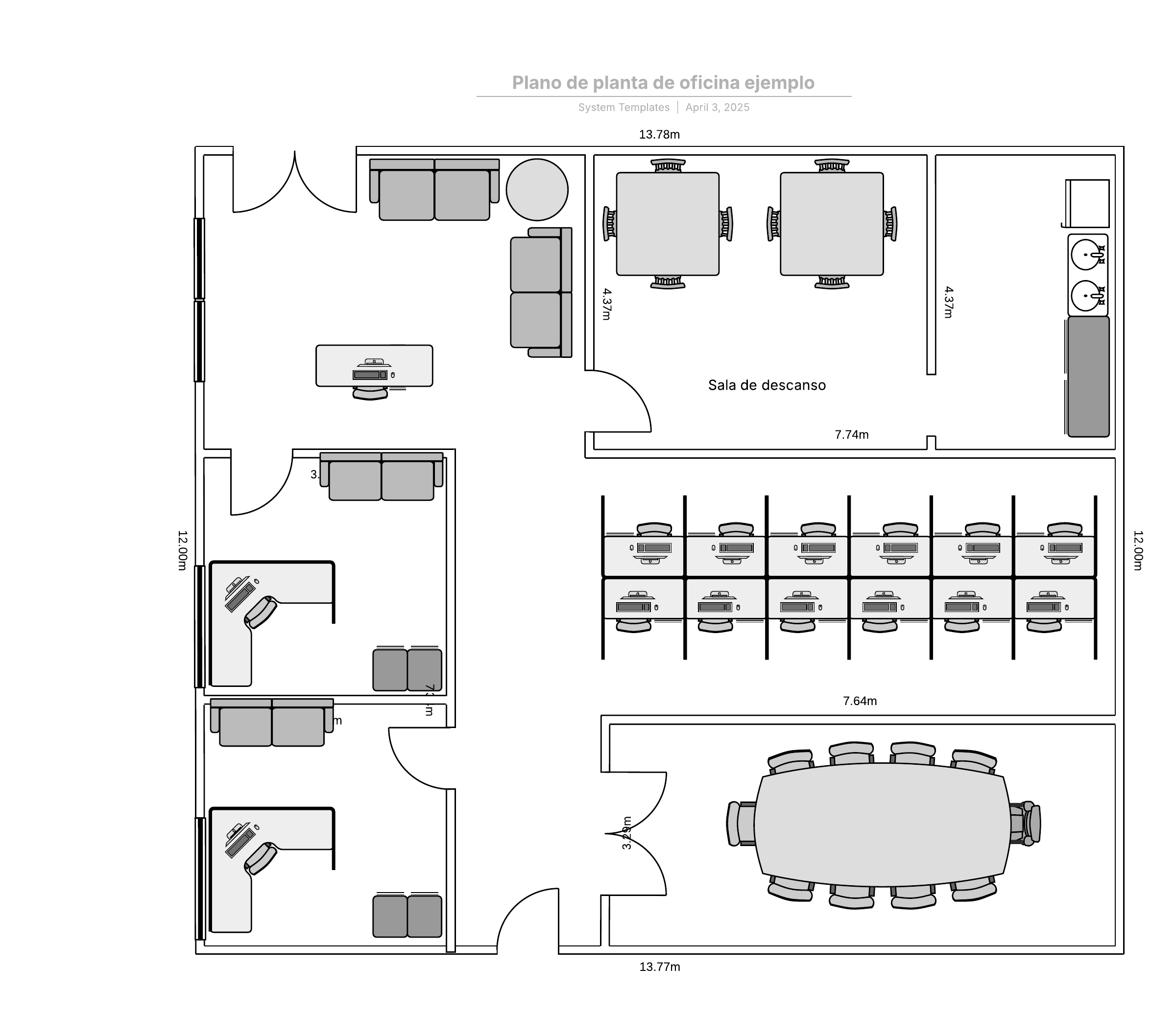 Esta plantilla de planos de planta de oficina puede ayudarte a realizar lo siguiente: