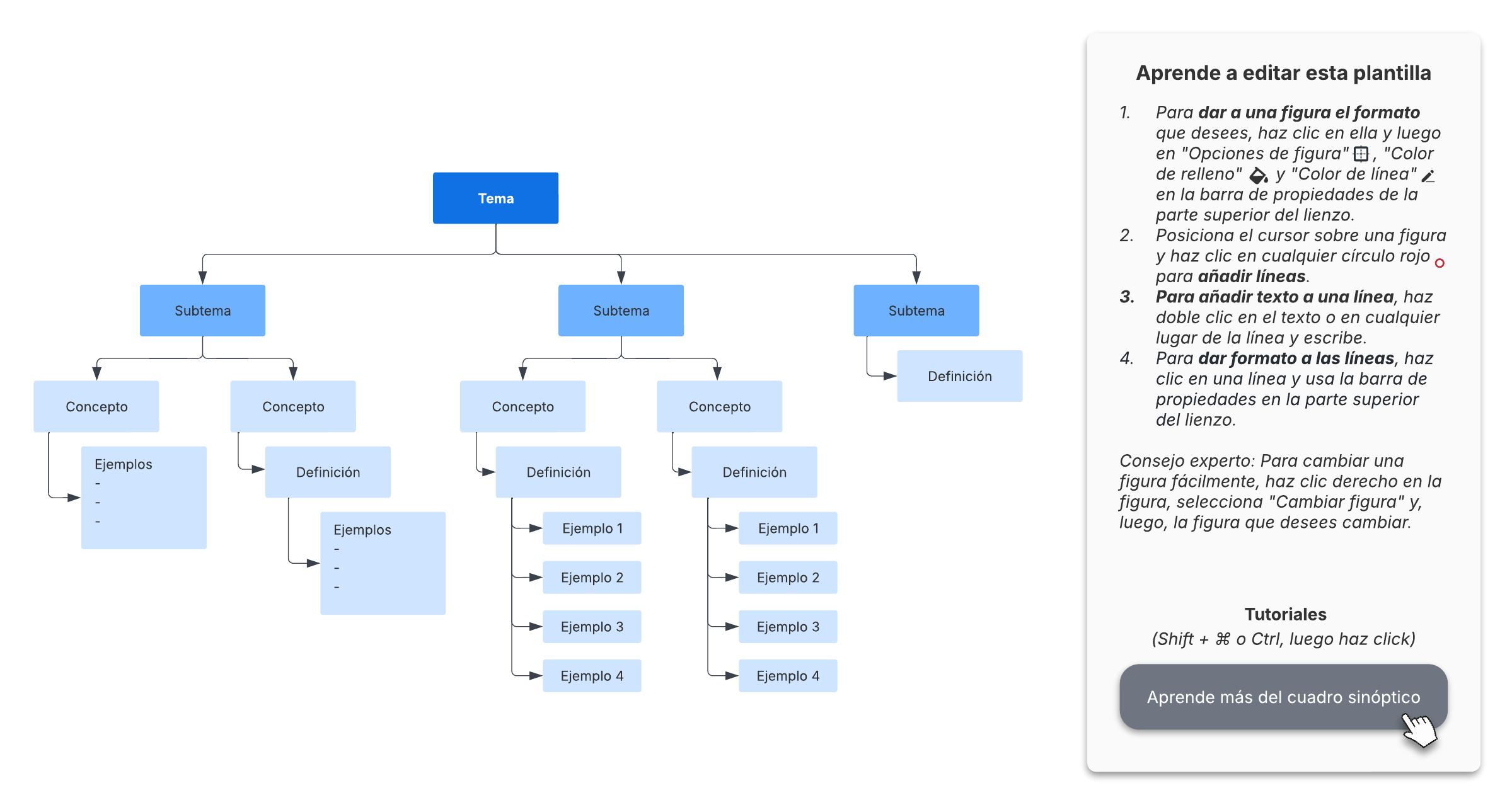 Un cuadro sinóptico en forma de diagrama es una herramienta visual que organiza la información jerárquicamente, desde un tema principal hasta subtemas, conceptos, definiciones y ejemplos. Esta estructura facilita la comprensión al mostrar de manera clara las relaciones entre las ideas.
