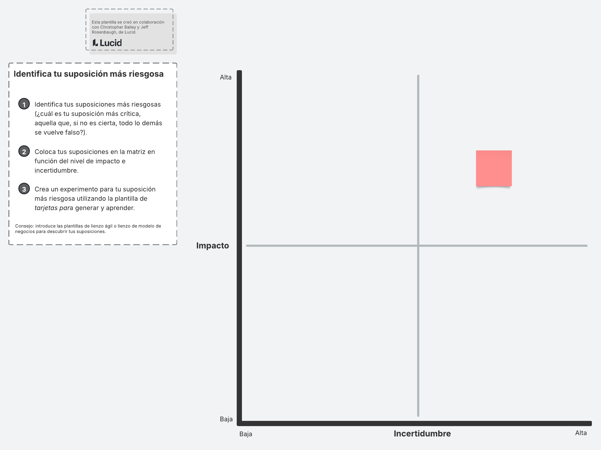 Identifica tus suposiciones más riesgosas usando esta matriz de suposiciones críticas.