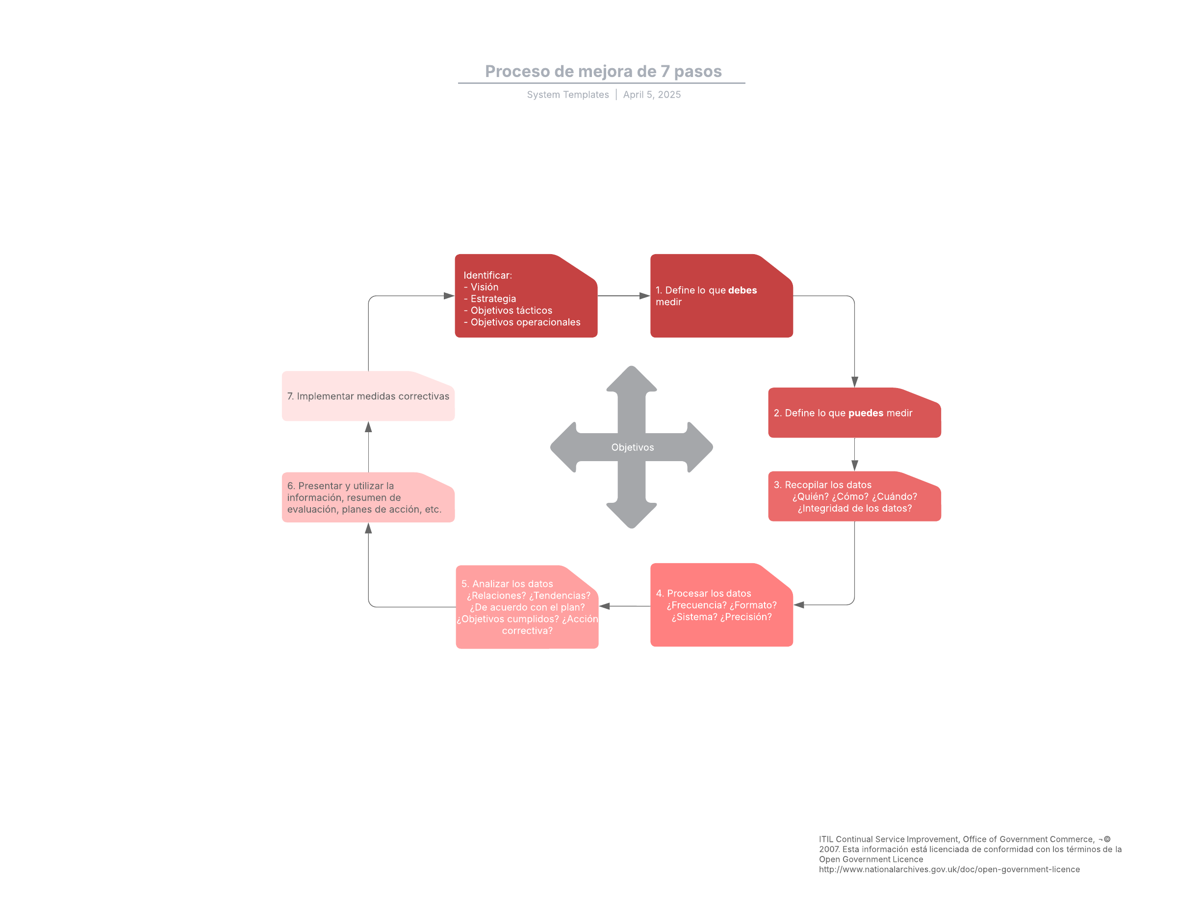 Abre esta plantilla y agrega contenido para personalizar esta plantilla de procesos de mejora de 7 pasos para tu caso de uso.