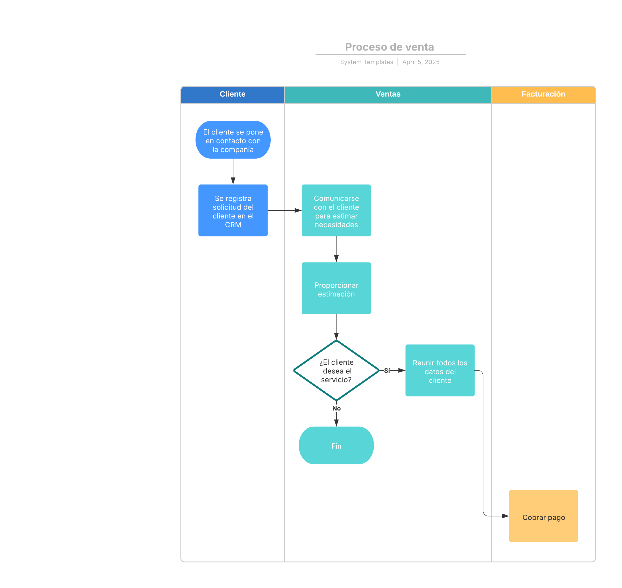 Esta plantilla de diagrama de procesos de ventas puede ayudarte a realizar lo siguiente: