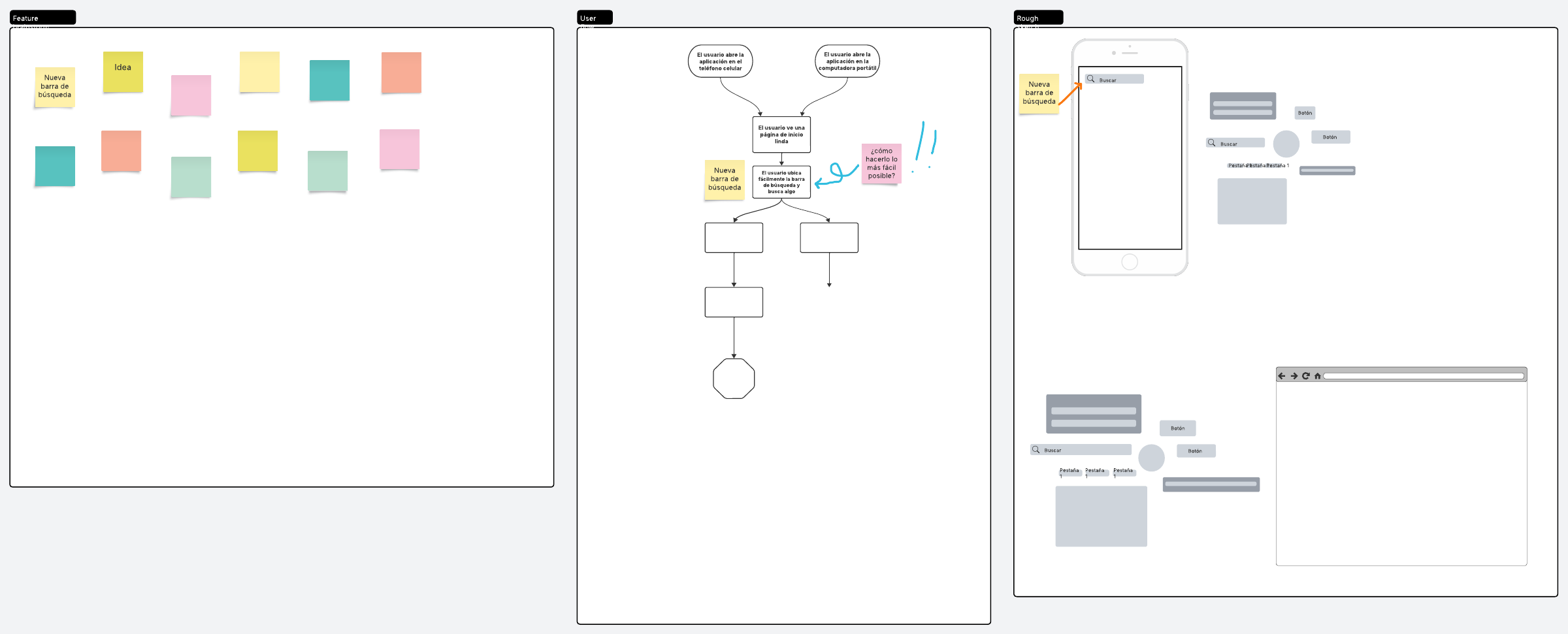 Aprovecha al máximo tus reuniones de diseño con esta plantilla para reunión de diseño de producto. Propón ideas valiosas, crea bosquejos y desarrolla los flujos de los usuarios.
