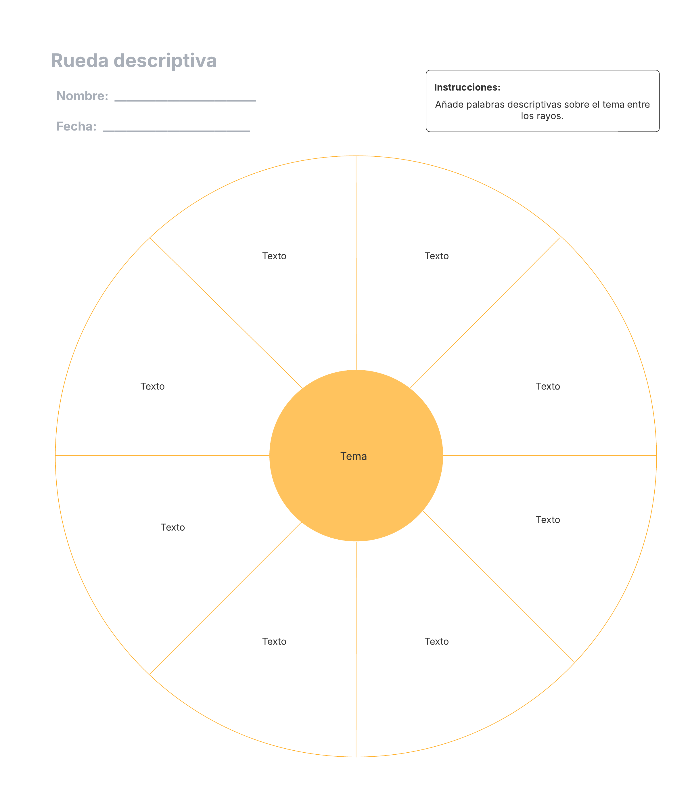 Esta plantilla de rueda descriptiva puede ayudarte a lograr lo siguiente: