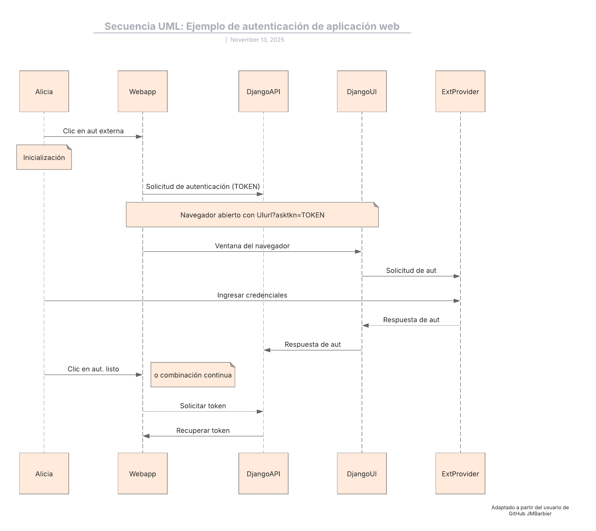 Secuencia UML: Ejemplo de autenticación de aplicación web