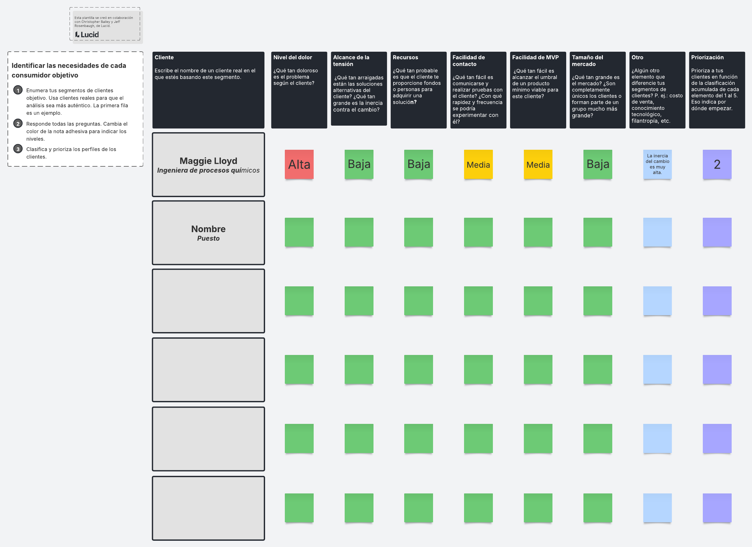 Usa esta plantilla para identificar y priorizar los diferentes perfiles de tus clientes.