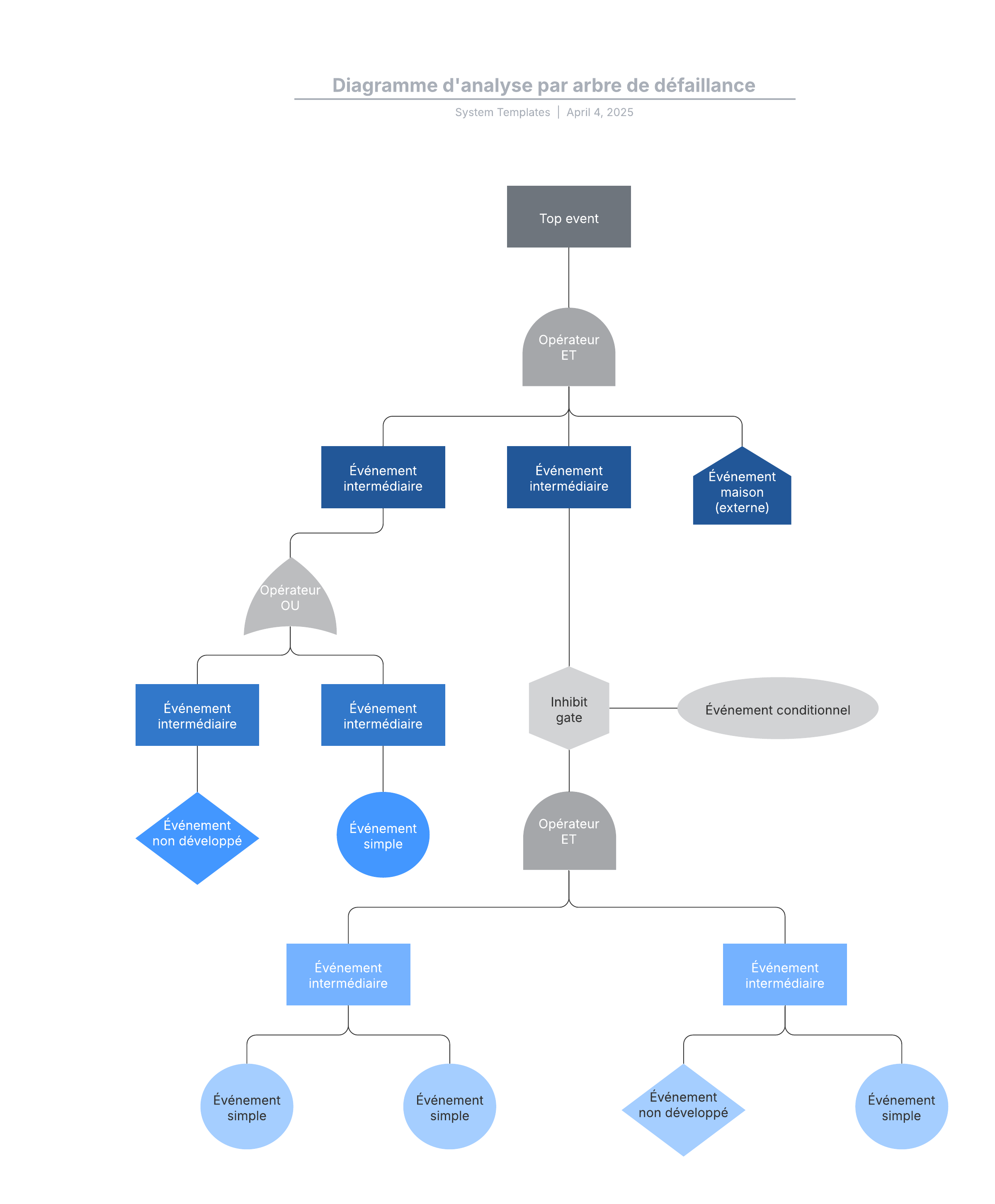 Ouvrez ce modèle d'analyse par arbre de défaillance et ajoutez-y du contenu pour le personnaliser selon votre cas d'utilisation.